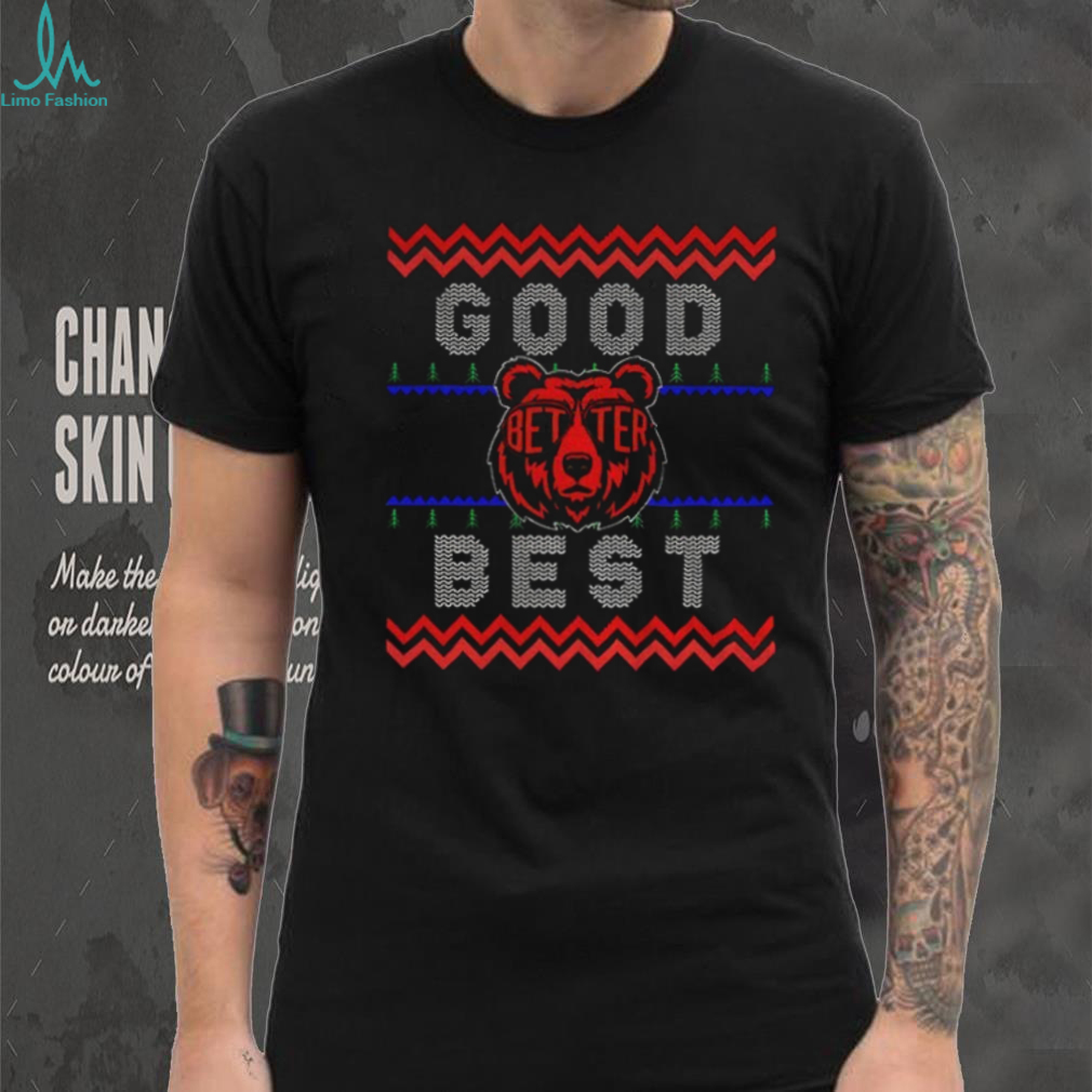 Show your Chicago Bears pride this Christmas with this “Good Better Best” tee featuring the 2025 logo! It’s the perfect way to combine your love for football and the holiday season. A festive and spirited shirt for any Bears fan.
