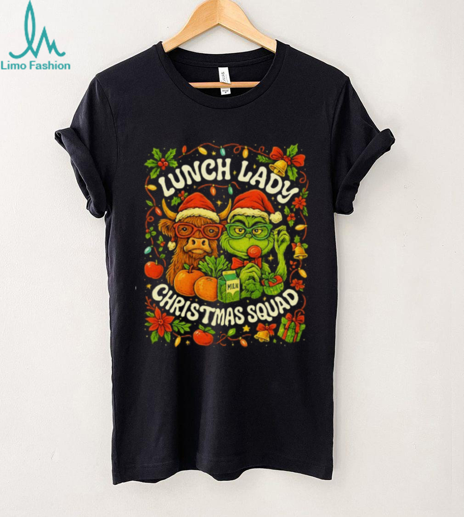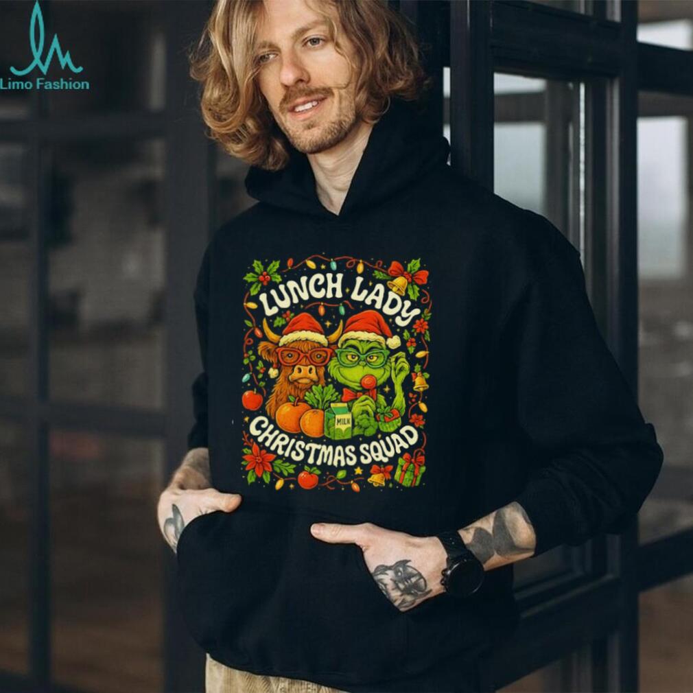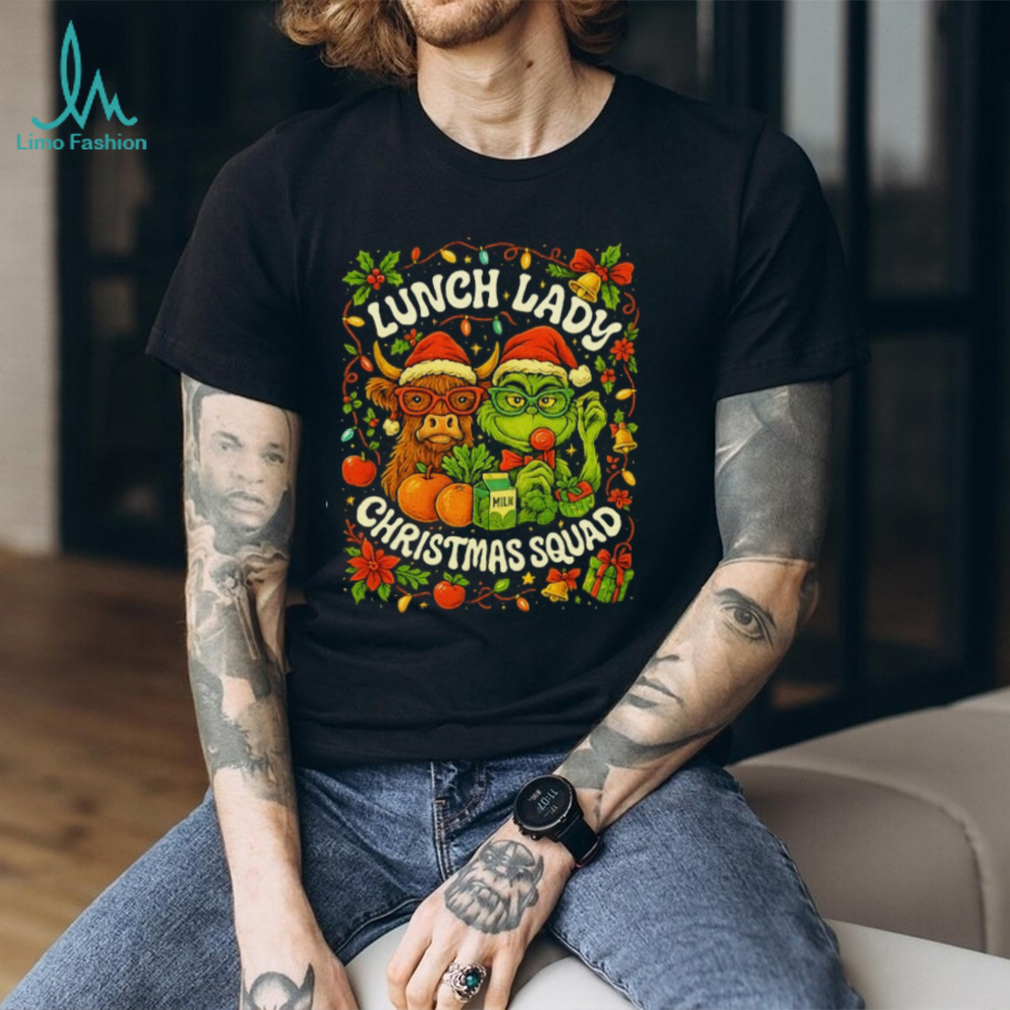 This Grinch and Cow Lunch Lady Christmas Shirt solves the challenge of finding a truly original and humorous piece of holiday apparel for the unsung heroes of the school day.