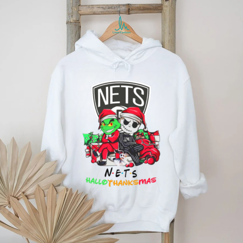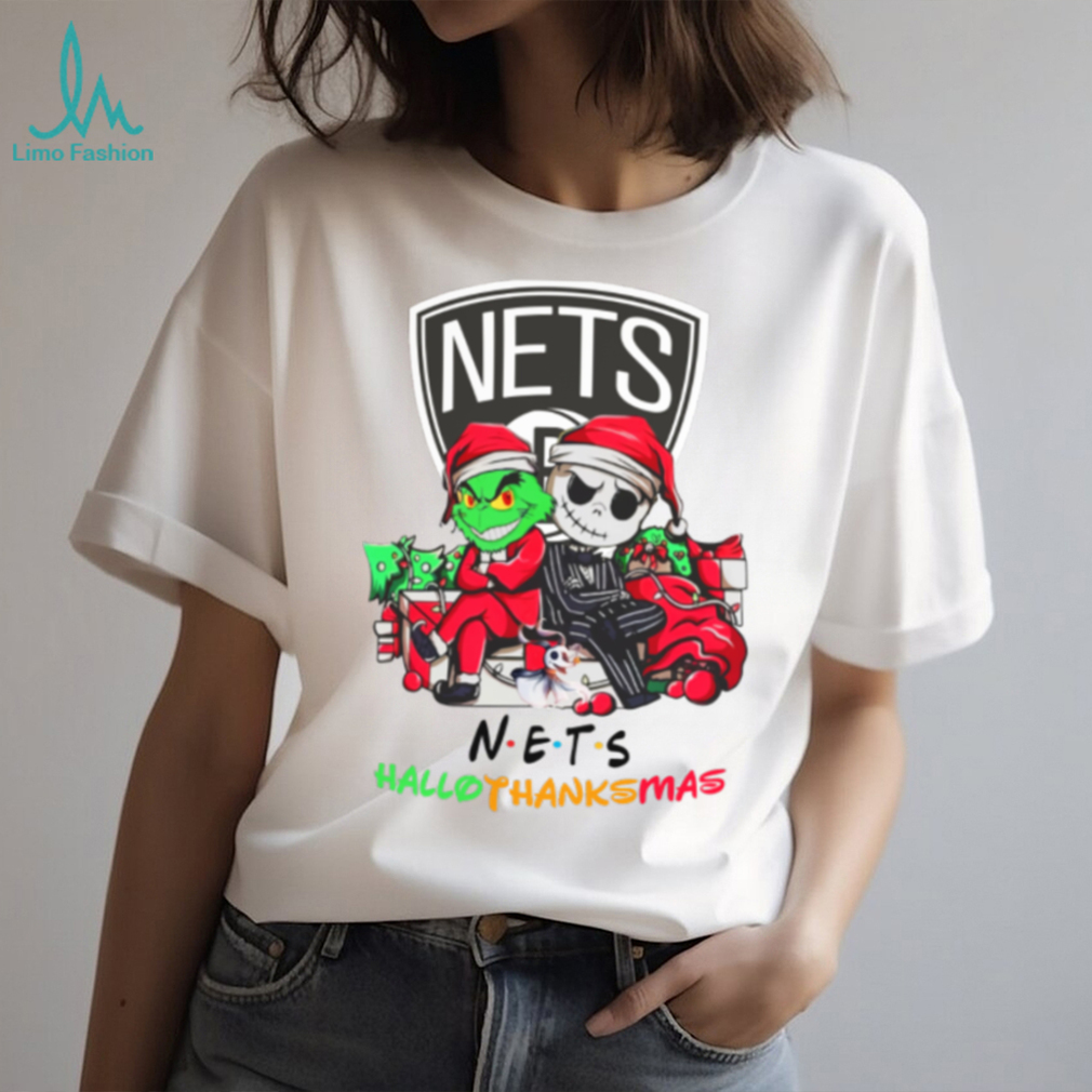 The Grinch And Jack Brooklyn Nets Friends HalloThanksMas T Shirt features a unique design that combines the iconic Grinch and Jack Skellington with Brooklyn Nets elements, creating a festive and fun look. Made from a soft cotton blend, this tee ensures all-day comfort, whether you’re at the arena or enjoying a cozy night in.