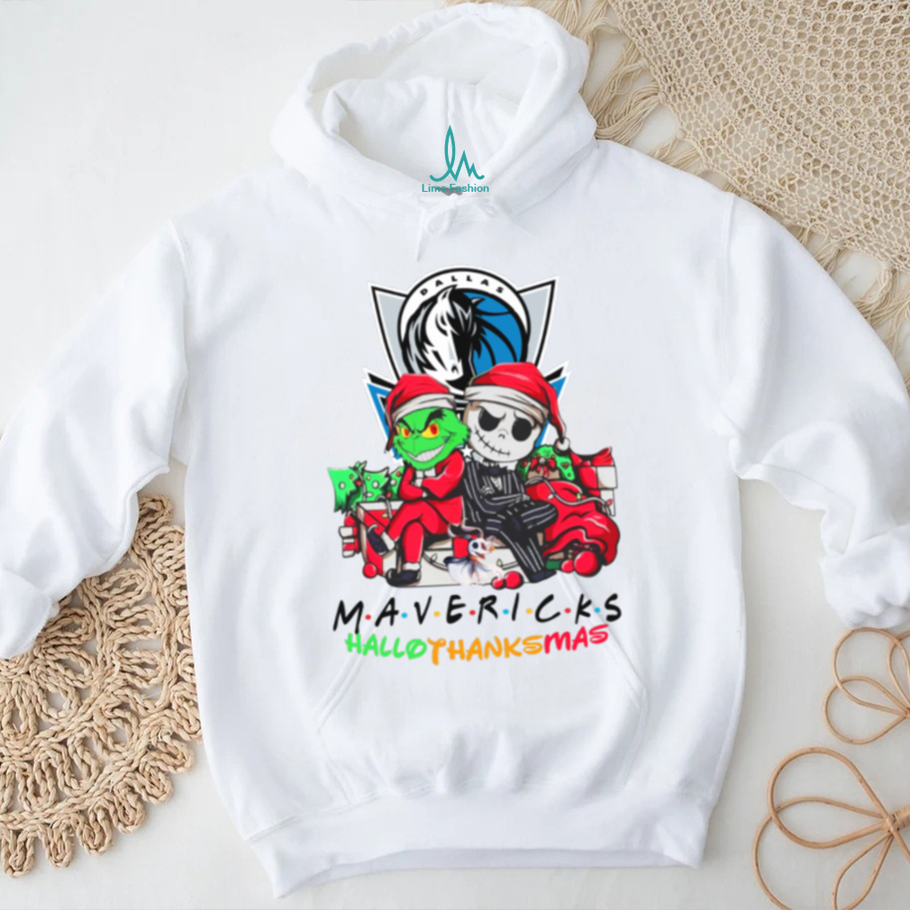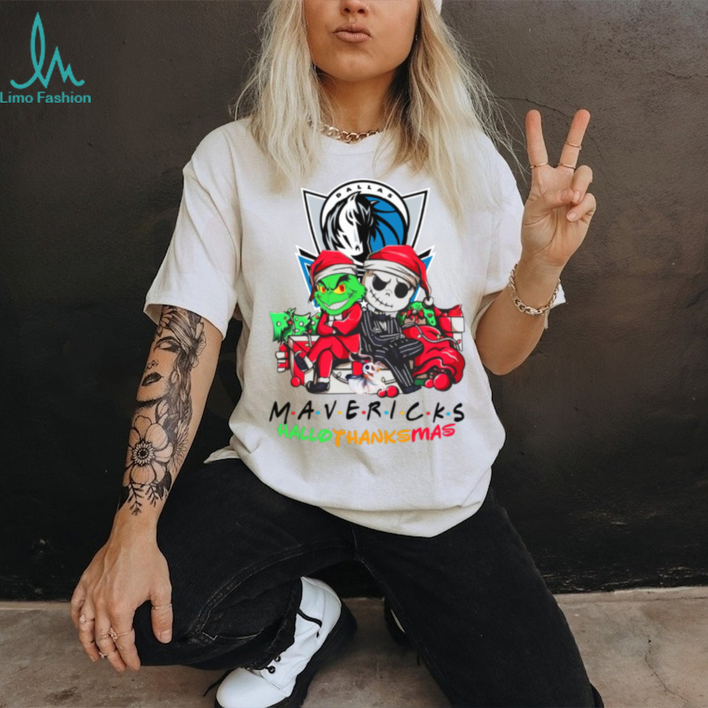 Celebrate the holidays with this unique Grinch And Jack Dallas Mavericks Friends HalloThanksMas T Shirt! This shirt brings together the Grinch and Jack Skellington.