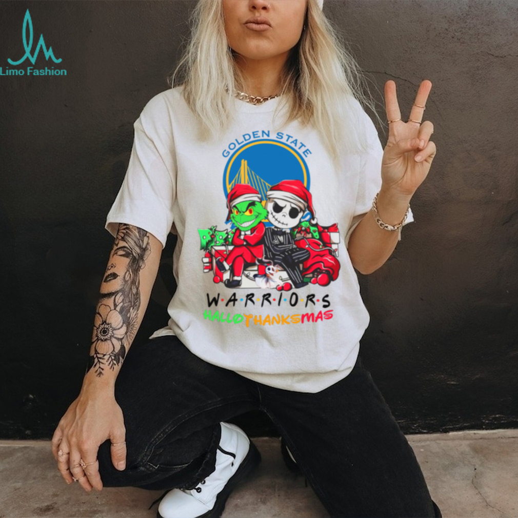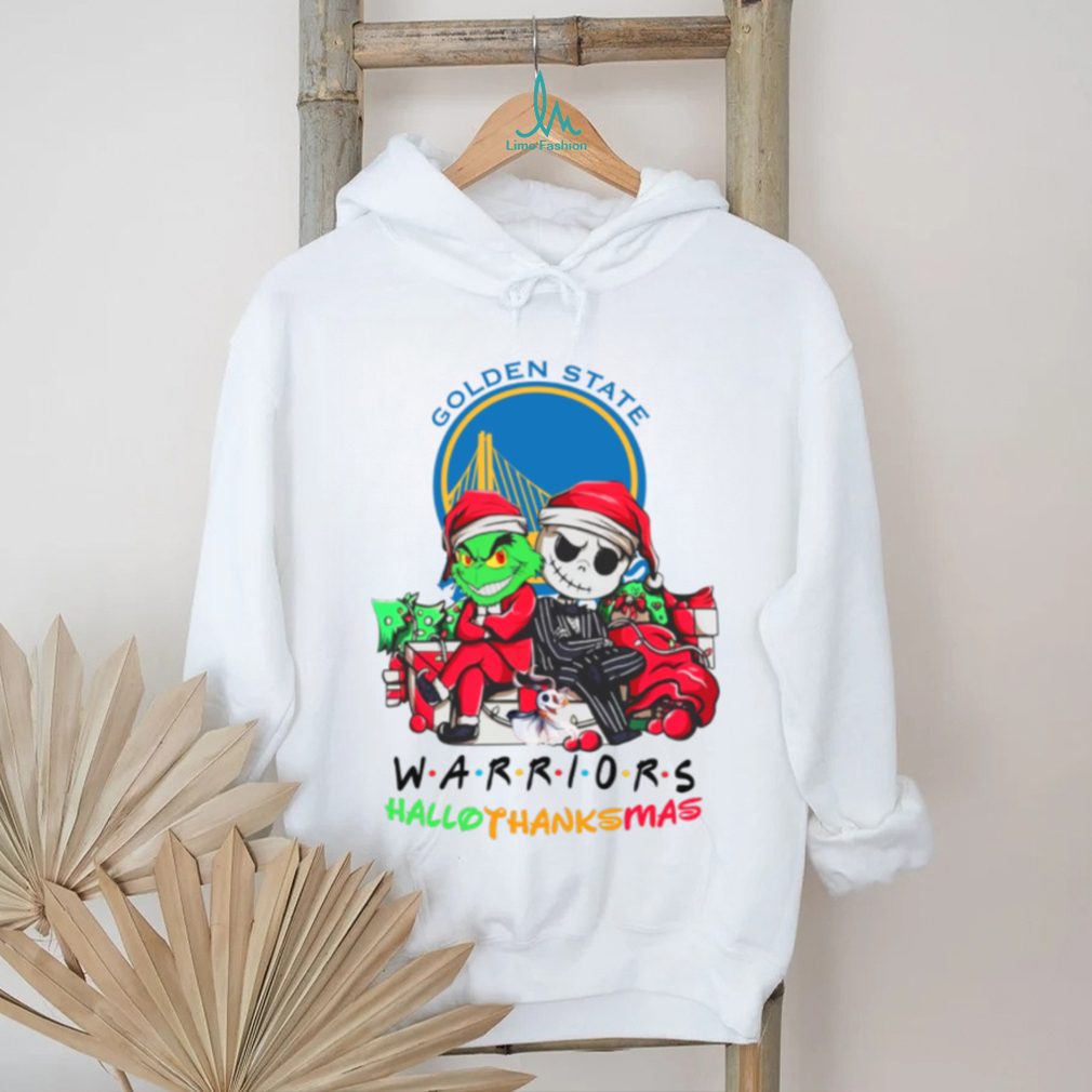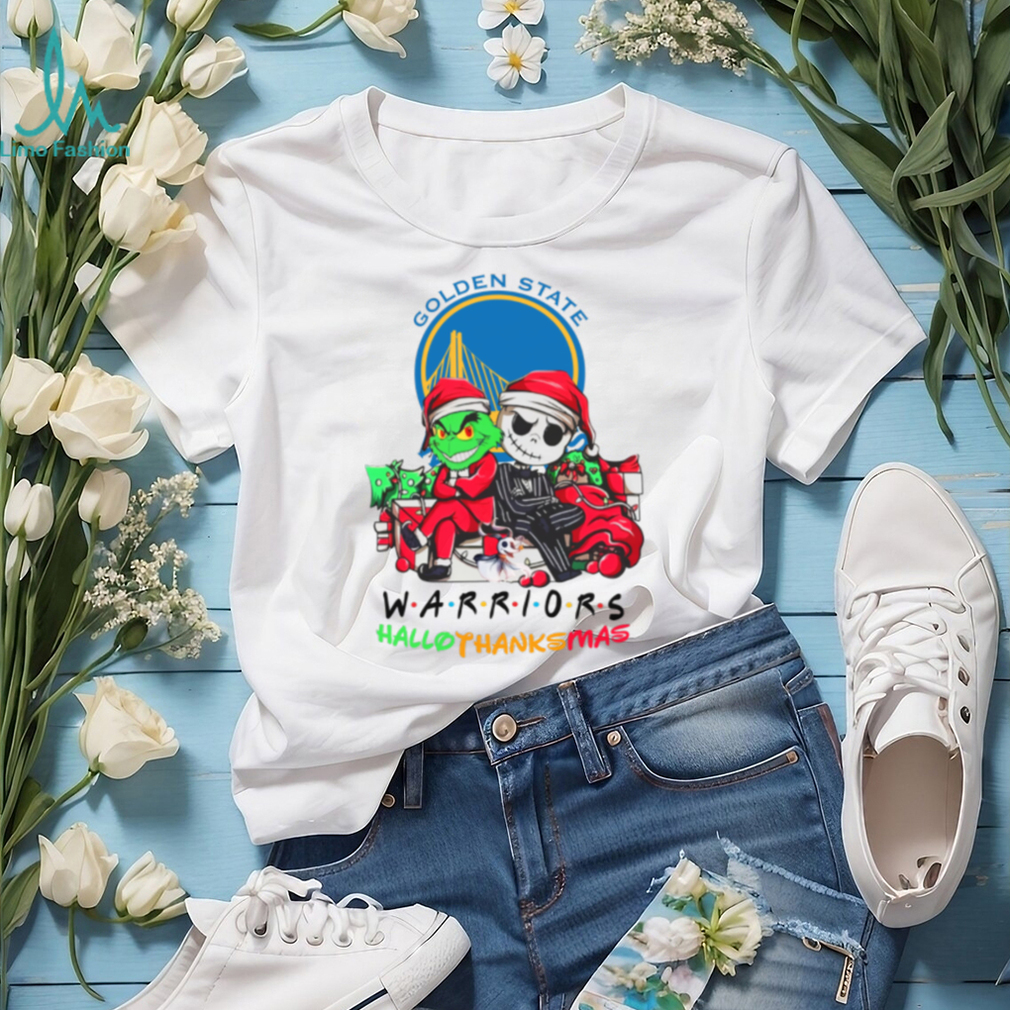 Get ready to celebrate the holidays with a slam dunk of fun! The “Grinch And Jack Golden State Warriors Friends HalloThanksMas T Shirt” brings together the mischievous Grinch, the beloved Jack Skellington, and the spirit of Golden State Warriors basketball. This tee is perfect for fans who love a unique mashup of holiday cheer and NBA fandom.