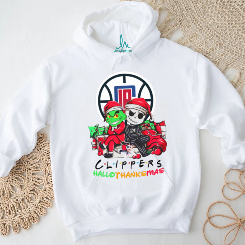 Remember the thrill of the game and the joy of the holidays? This Grinch And Jack LA Clippers Friends HalloThanksMas T Shirt brings together two beloved icons – the mischievous Grinch and the spirited Jack Skellington – in a fun, festive design. It’s perfect for showing off your love for the LA Clippers during the HalloThanksMas season.