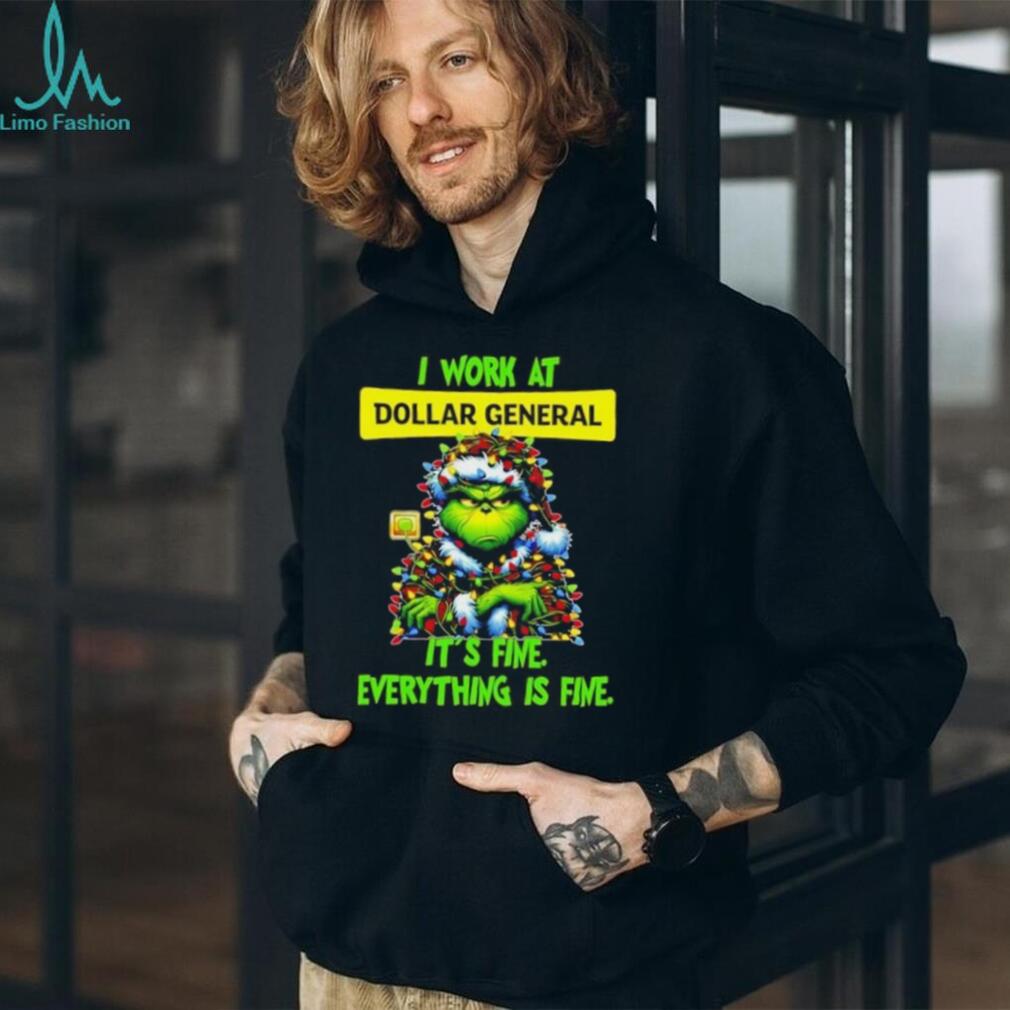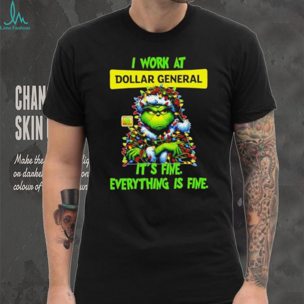 Survive the holiday rush with a touch of Grinchy humor! This shirt perfectly captures the chaotic spirit of working at Dollar General during the Christmas season. A hilarious way to express the sentiment “I work at Dollar General, it’s fine, everything is fine” while channeling your inner Grinch. It also makes a perfect gift for your hard working coworkers.