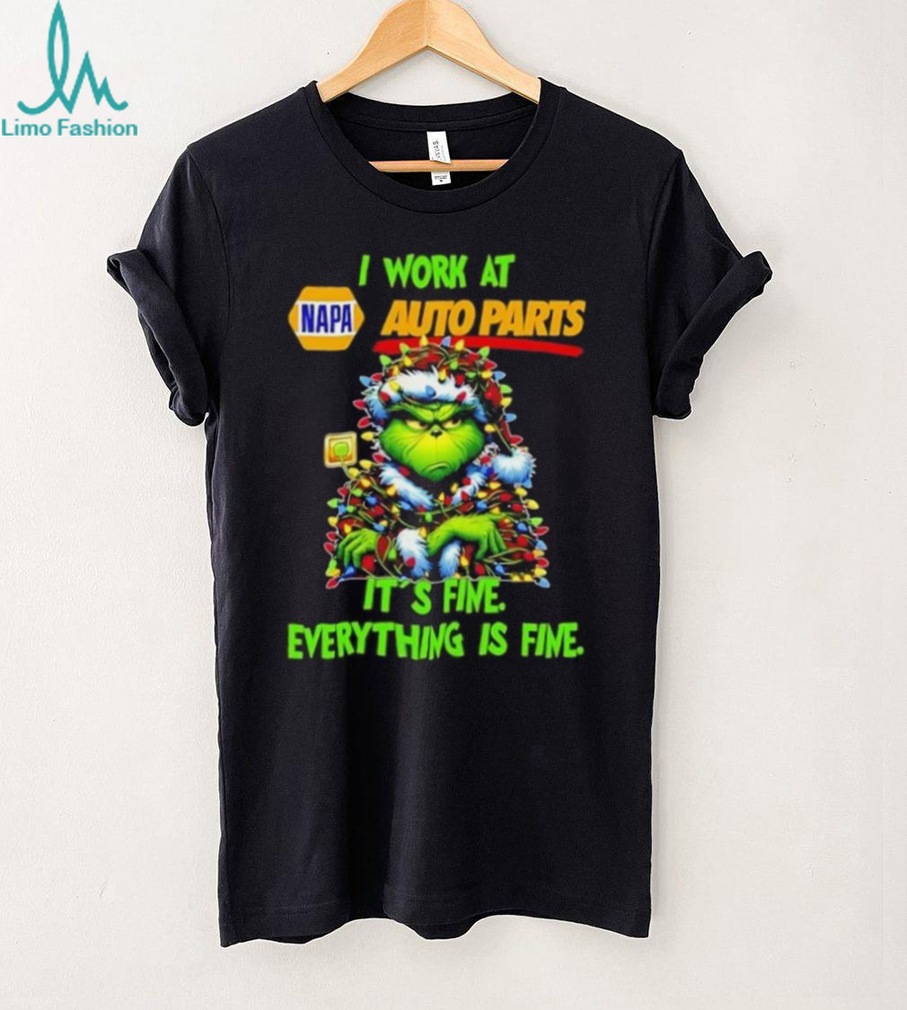 This unique t-shirt combines the iconic Grinch with a relatable work sentiment for Napa Auto Parts employees (or anyone who’s ever dealt with car troubles during the holidays!). Featuring a festive Christmas tree made of auto parts and the phrase “I work at it’s fine everything is fine,” it’s guaranteed to spark some laughs. Made with a comfortable and breathable cotton blend, this shirt is perfect for wearing at the shop, holiday gatherings, or just relaxing at home. Show off your holiday (and automotive) humor with this one-of-a-kind tee!