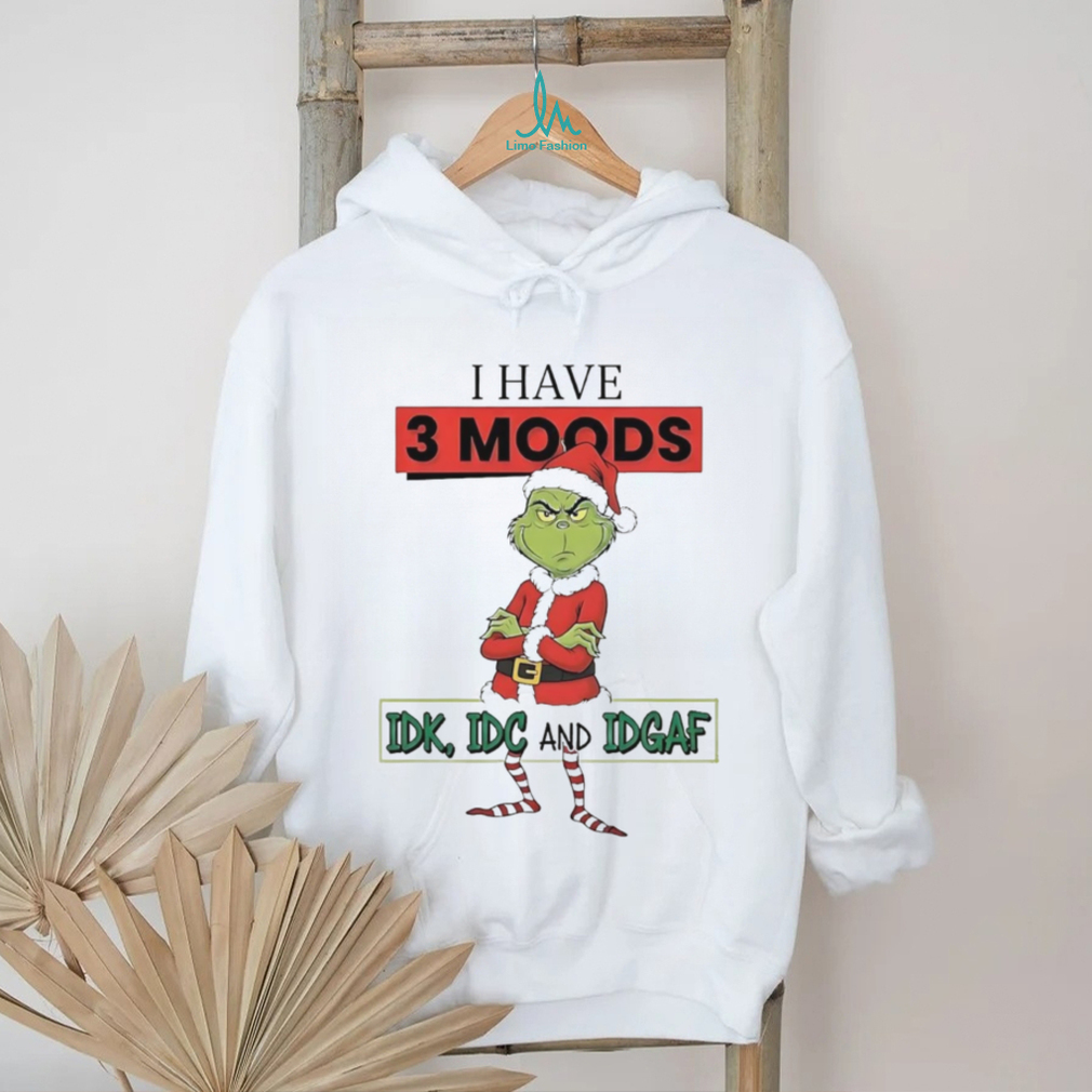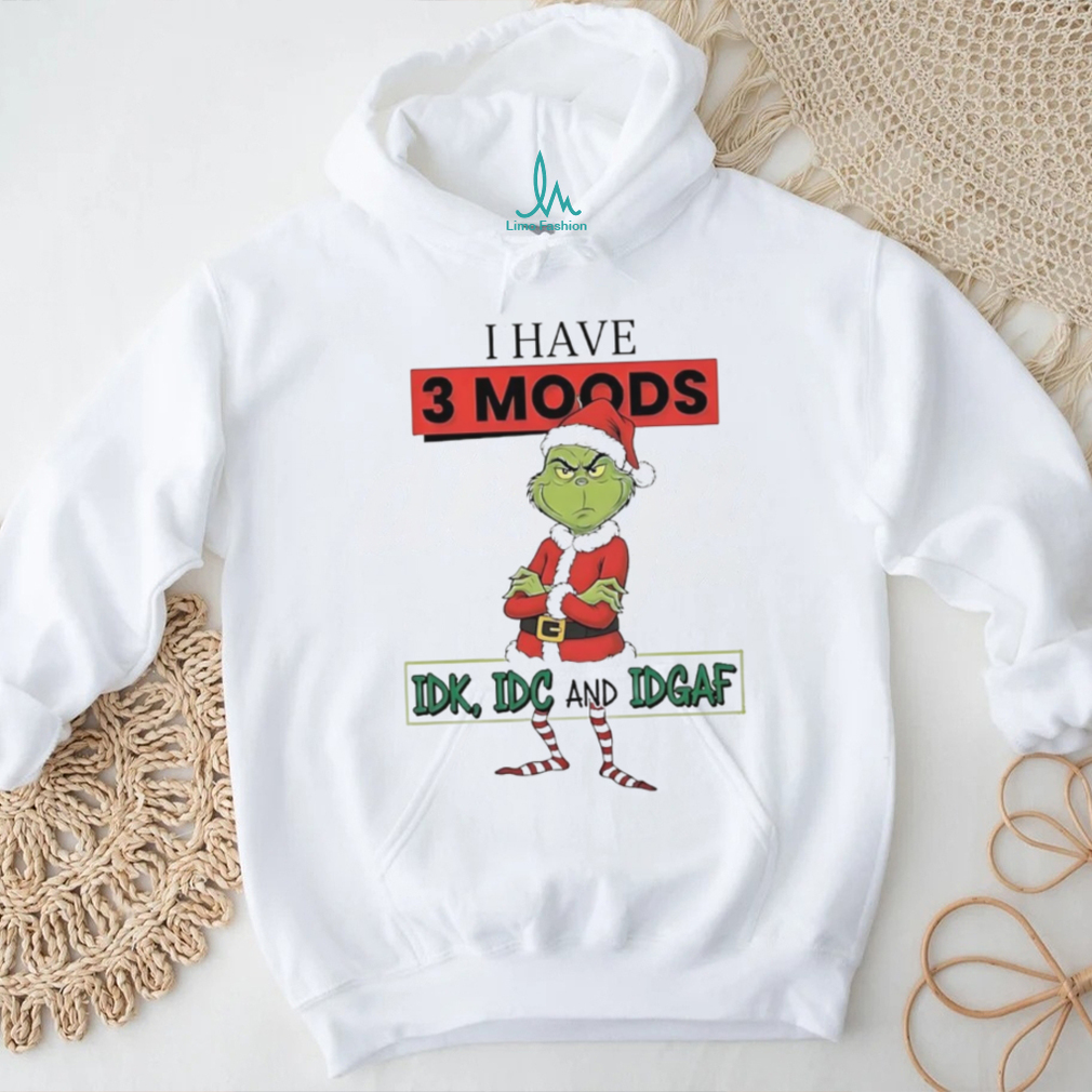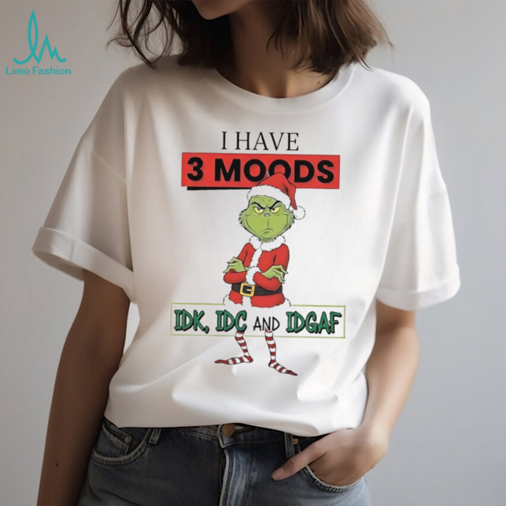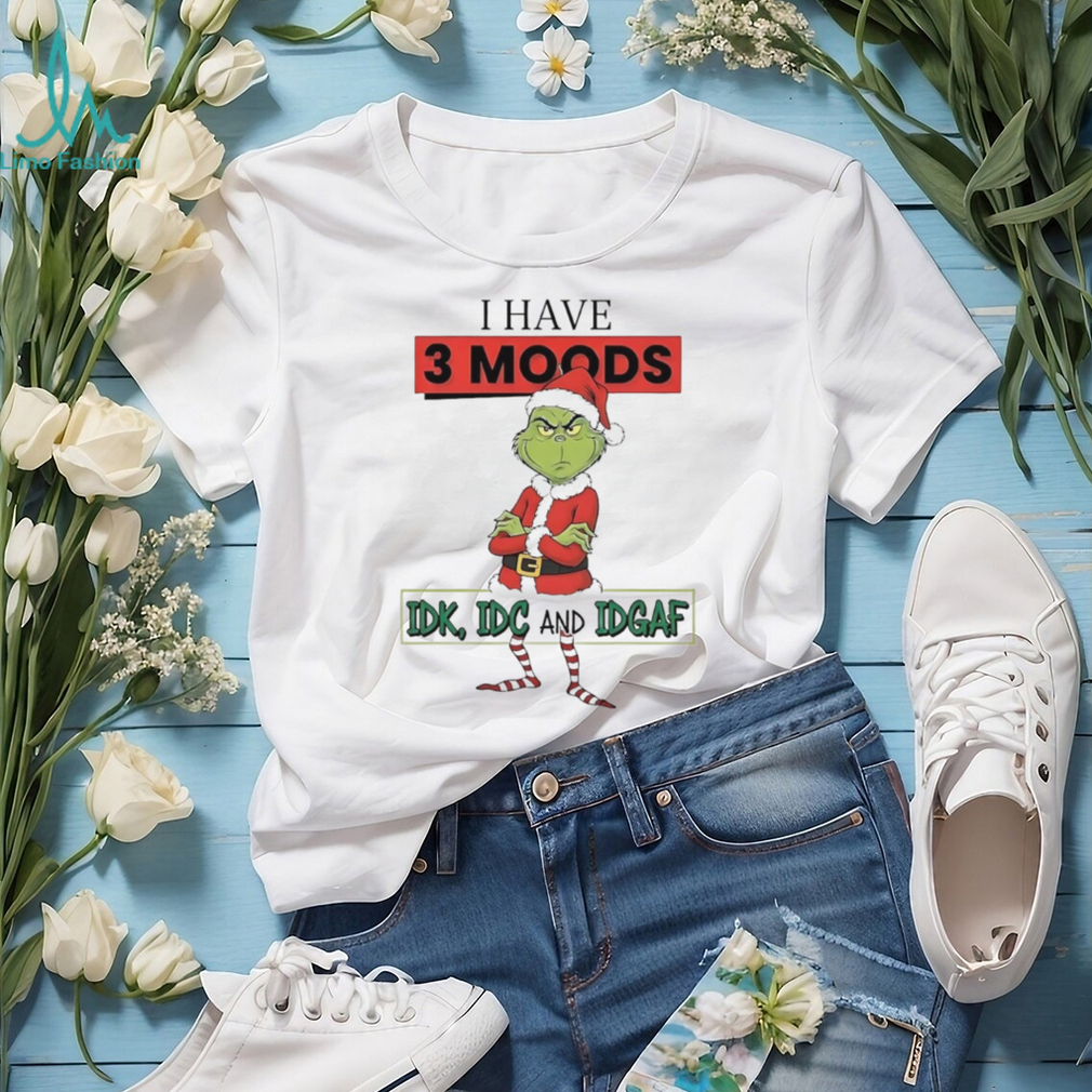 Some days you just can’t be bothered. This Grinch shirt gets it! Featuring the relatable phrase “Grinch I have 3 moods idk idc and idgaf Christmas shirt”, it’s perfect for expressing your ambivalent holiday spirit. Ideal for those who embrace their moods (all three of them!).
