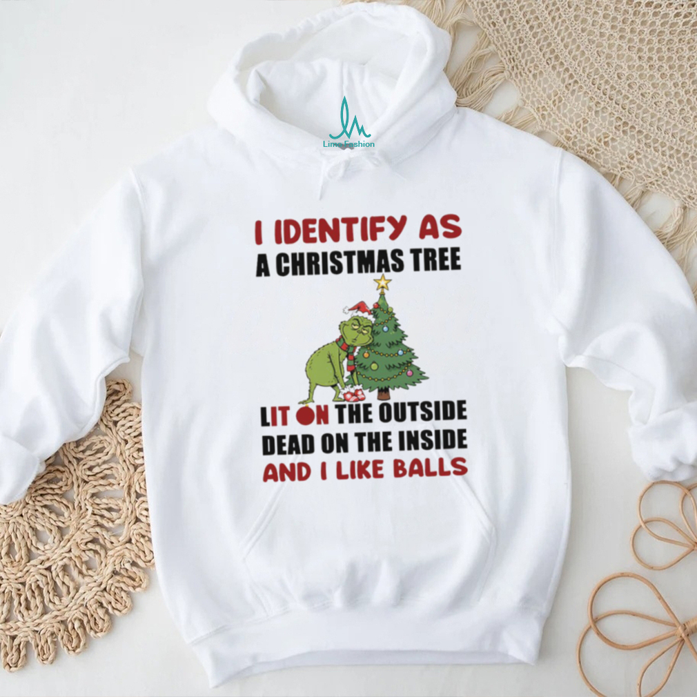 Embrace your inner Grinch with this hilariously honest Christmas shirt! Featuring the quote “I identify as a Christmas tree: lit on the outside, dead on the inside and I like balls”, this tee is perfect for those who prefer a touch of sarcasm with their holiday cheer.
