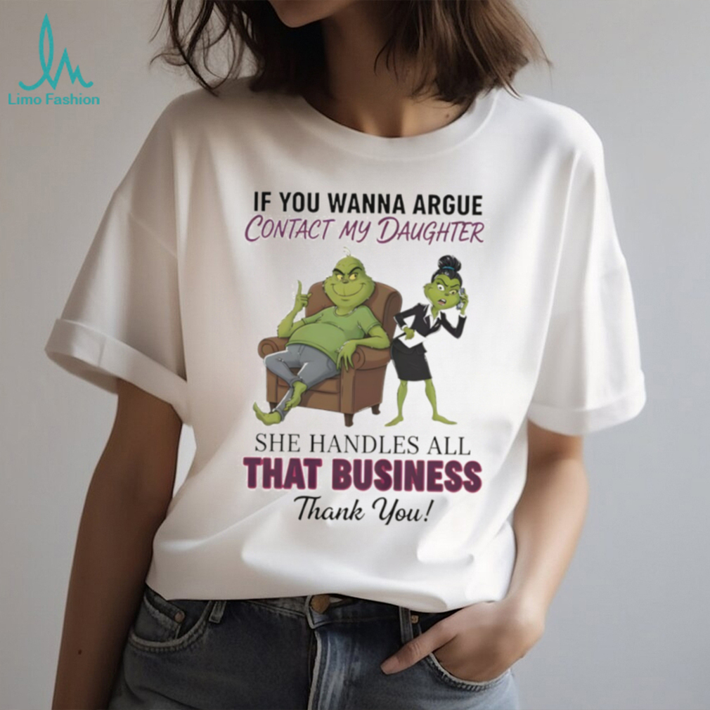 Grinch if you wanna argue contact my daughter she handles all that business thank you Merry Christmas shirt