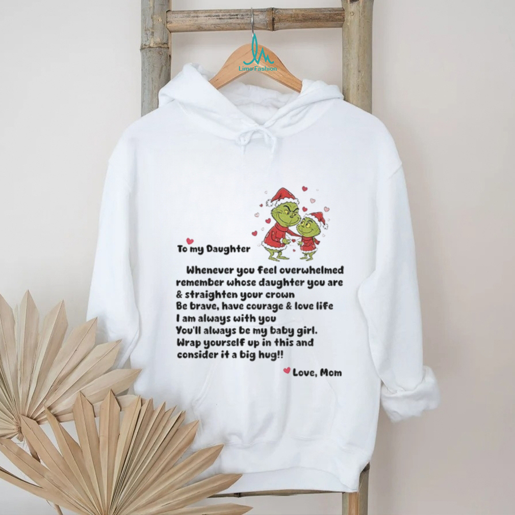 For every daughter who sometimes feels the weight of the world, this “Grinch Santa Claus to my daughter whenever you feel overwhelmed remember whose Merry Christmas shirt” is a warm, funny hug she can wear. It’s more than just a Christmas tee; it’s a playful reminder of her strength, delivered with that classic Grinch charm. Perfect for brightening up her holiday season, this shirt blends festive spirit with a touch of empowering humor.