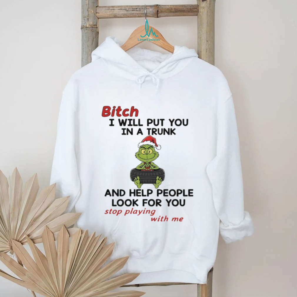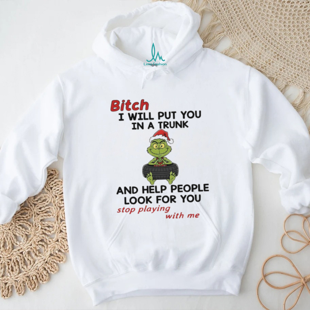 What Makes This Grinch Santa hat bitch I will put you in a trunk and help people look for you stop playing with me Christmas shirt Epic