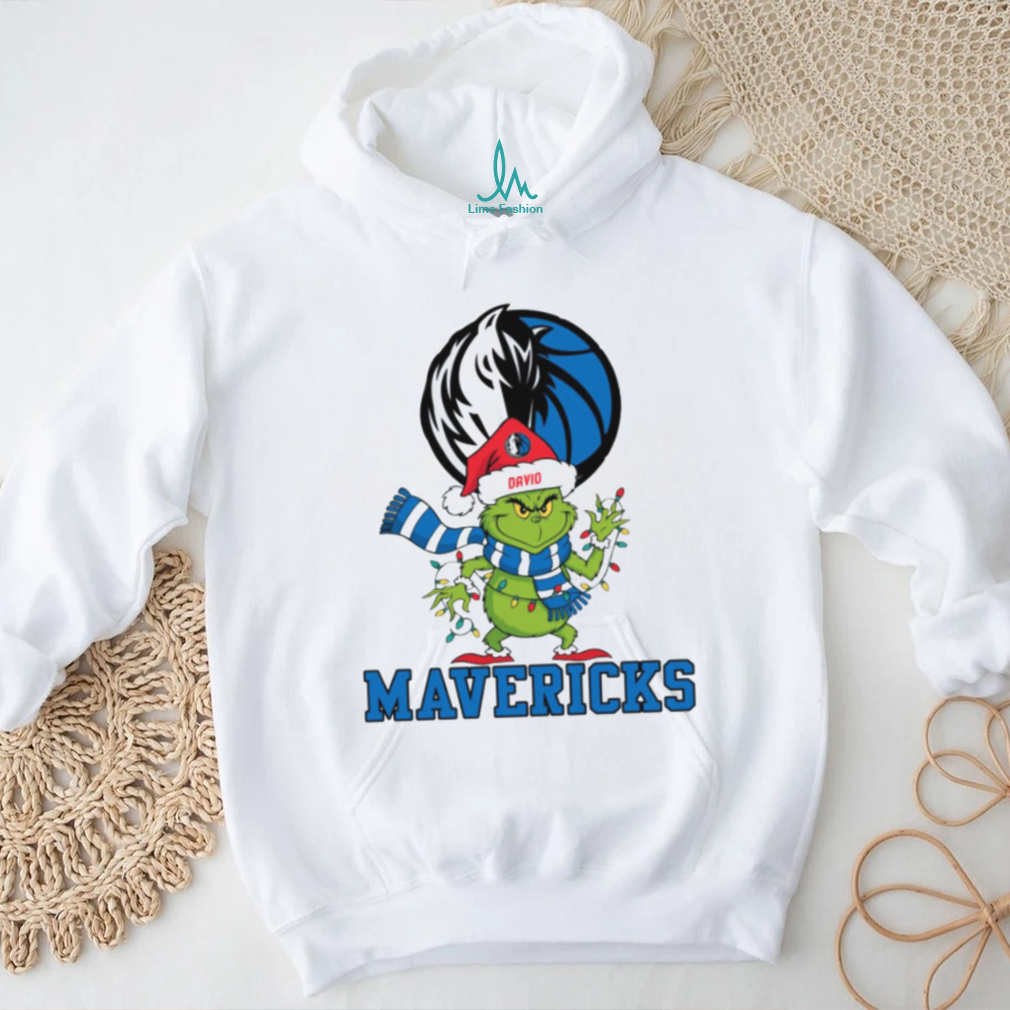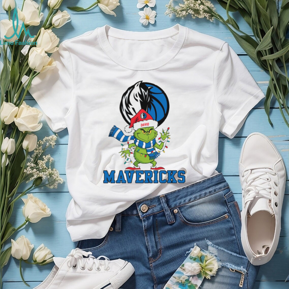 Grinch Santa Hat Christmas Tee, Personalized Dallas Mavericks Holiday Shirt with Lights Scarf, Funny NBA Fan Gift