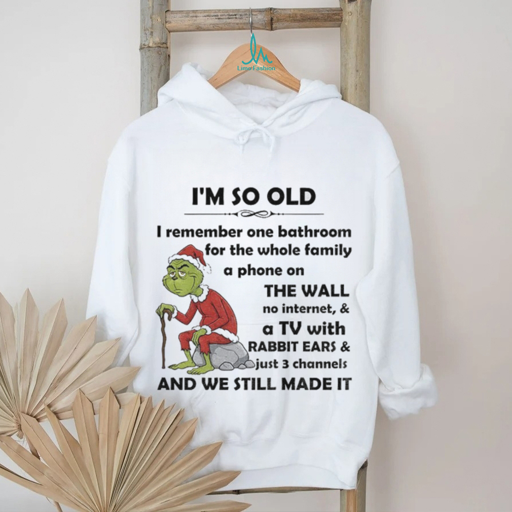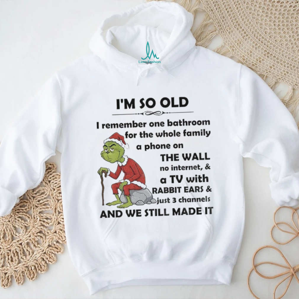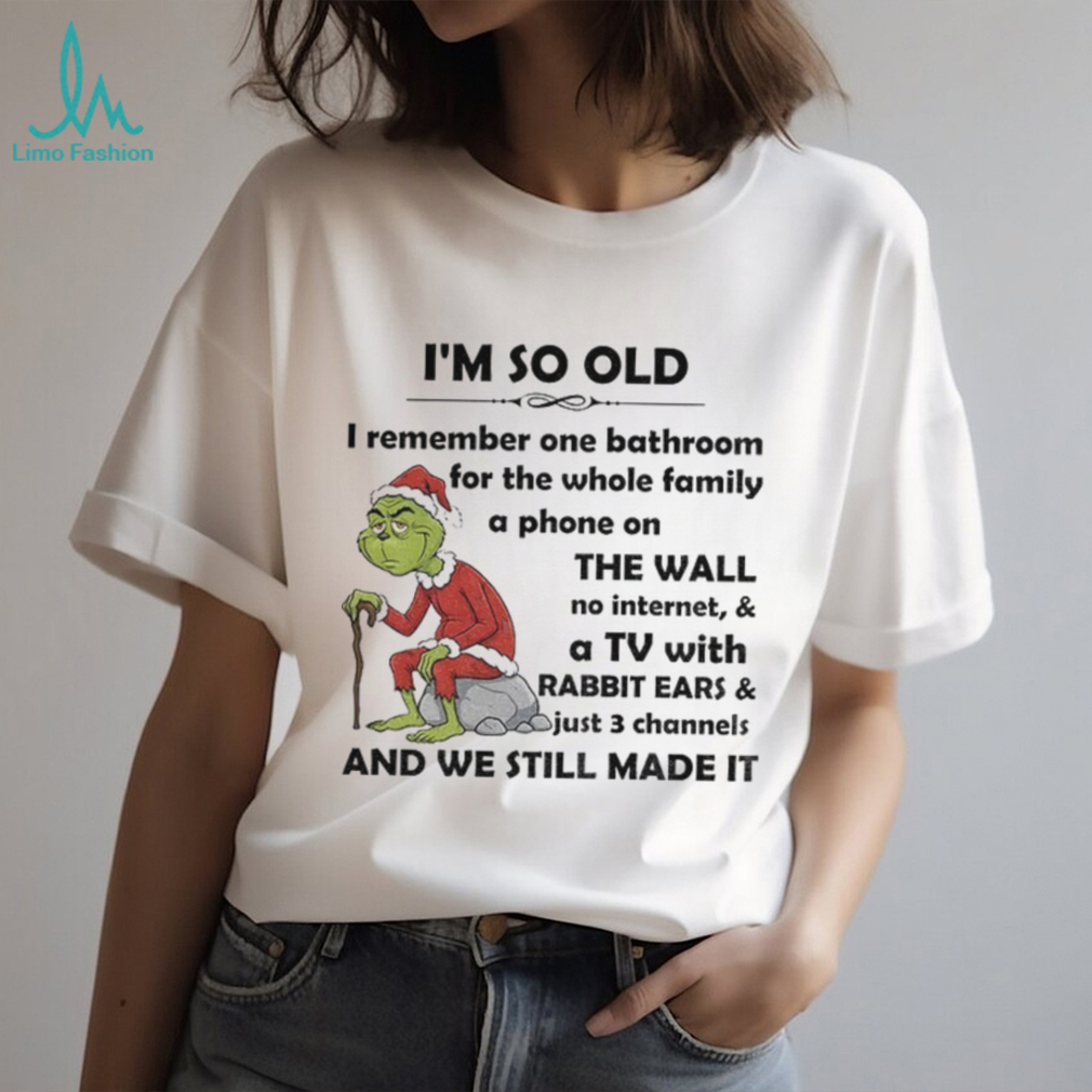 This Grinch Santa “I’m So Old” Christmas shirt is perfect for those who like to reminisce about the good old days, while also spreading some sarcastic holiday cheer! If you remember when one bathroom and a wall phone were all you needed, this shirt is for you.