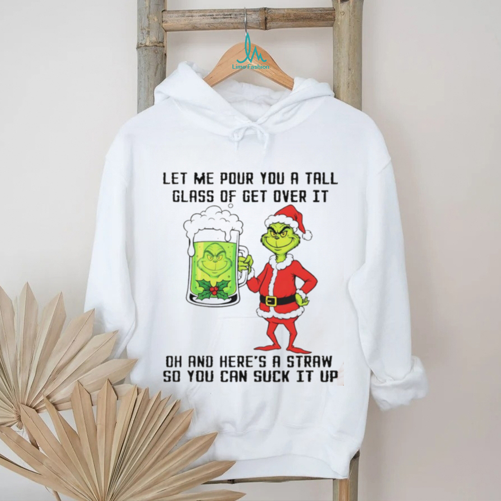 Remember that one Christmas when you just wanted to skip the carols and eggnog and tell everyone to ‘get over it’? This Grinch Christmas shirt perfectly captures that mood! Featuring the Grinch sporting a Santa hat and offering a ‘tall glass of get over it,’ it’s the ideal way to showcase your holiday spirit with a side of sarcasm.