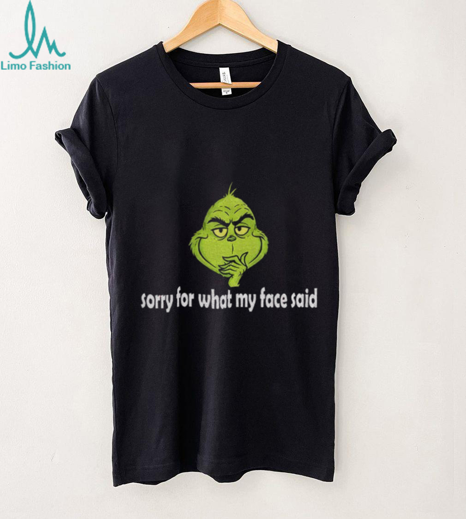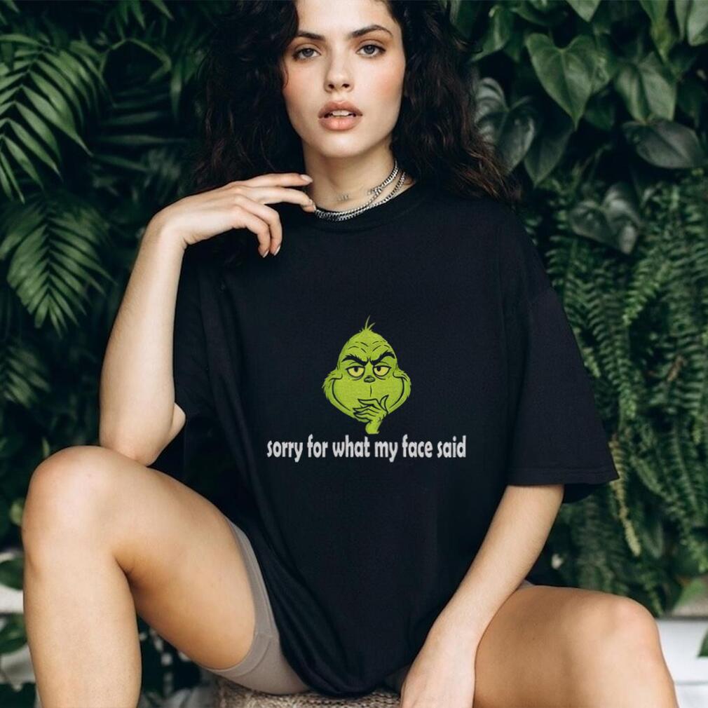 This shirt is tailor-made for the trendsetting individual who loves to stand out with a dose of humor during the festive season. It’s for the person who’s always armed with a witty remark, the Grinch enthusiast, or anyone looking to inject some playful rebellion into their holiday attire. It also makes an excellent, memorable gift for friends, family, or co-workers who share a similar appreciation for funny, slightly sarcastic Christmas spirit. Imagine the smiles (and knowing glances) this “Grinch Santa sorry for what my face said Christmas shirt” will bring!