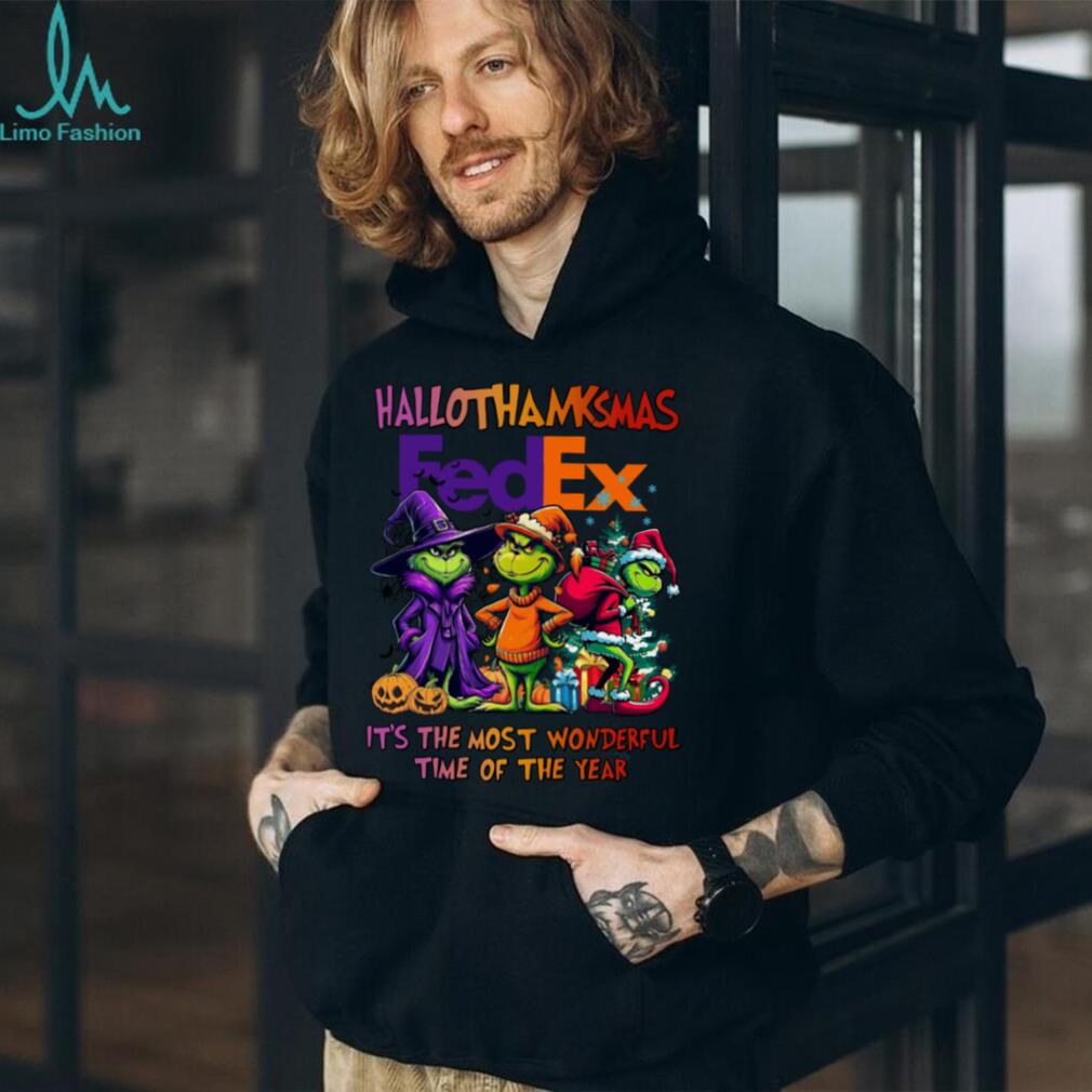 Spread some holiday cheer with a twist with this “Grinch X Fedex” Hallothanksmas T-shirt! This unique tee mashes up the Grinch with Fedex for a hilarious take on the holiday season. If you’re the type who loves to celebrate Halloween, Thanksgiving, and Christmas all at once, this shirt is your perfect festive statement.