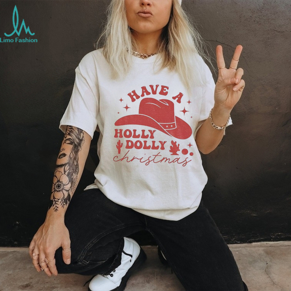 Howdy Holidays! Combine your love for country music and Christmas cheer with this “Have A Holly Dolly” shirt! Featuring Dolly Parton with a fun Christmas cowboy hat, this tee is sure to be a conversation starter. Get ready to yee-haw your way through the holiday season!