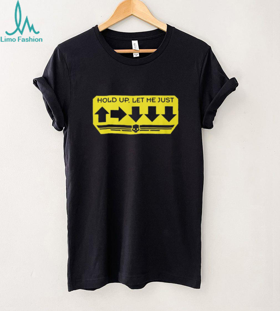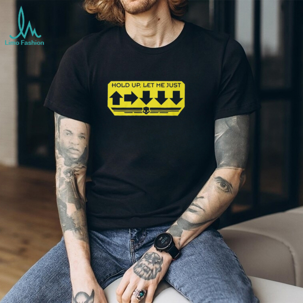 (Helldivers 2 “Hold Up, Let Me Just” Stratagem Input Gaming T Shirt)Helldivers 2 “Hold Up, Let Me Just” Stratagem Input Gaming T Shirt, Treat yourself or make a great gift for your loved ones