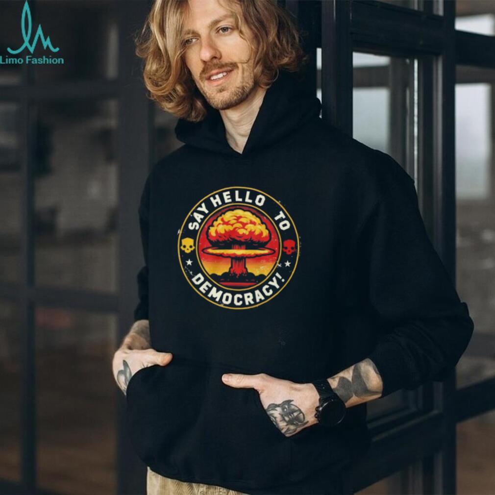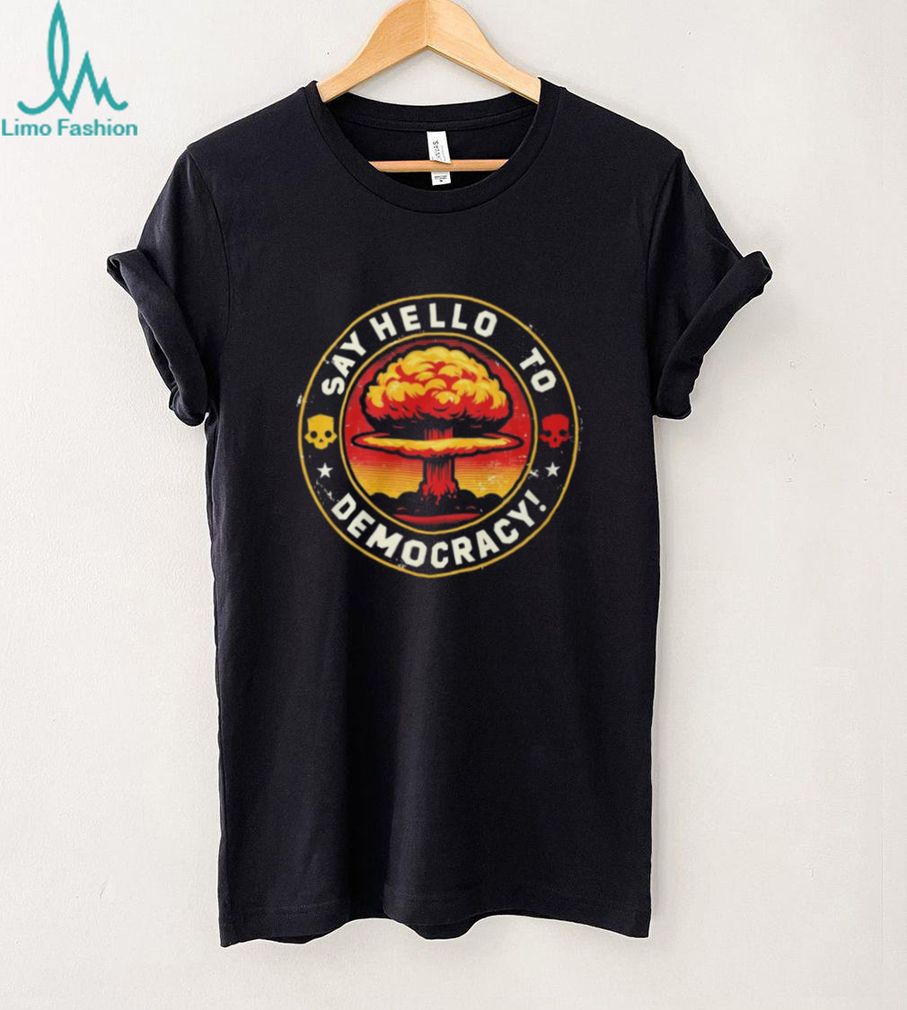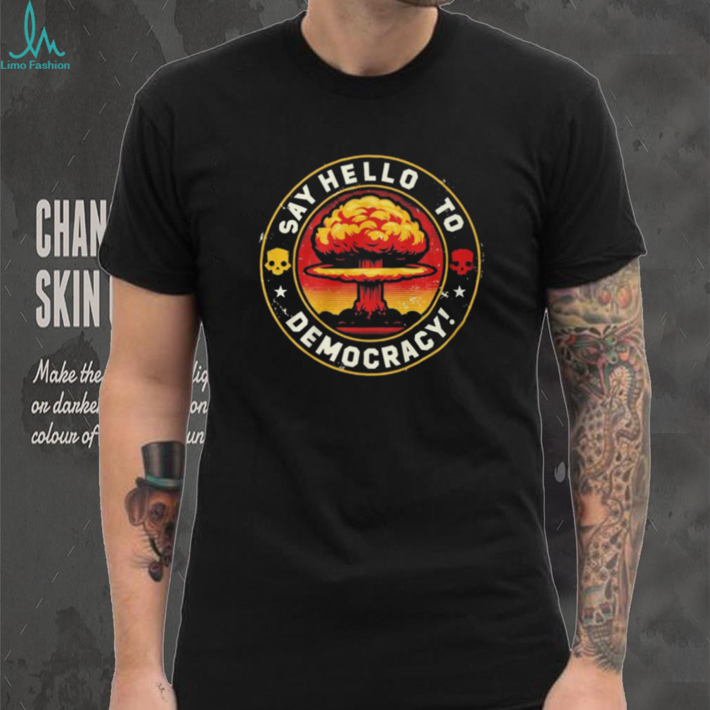 (Helldivers 2 Say Hello to Democracy Mushroom Cloud Graphic Tee)Helldivers 2 Say Hello to Democracy Mushroom Cloud Graphic Tee, Treat yourself or make a great gift for your loved ones