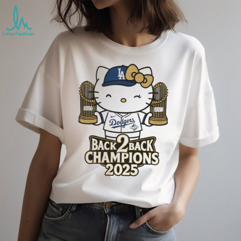 Imagine the roar of the crowd, the thrill of victory, and then, a delightful surprise: Hello Kitty celebrating right alongside your favorite baseball team! This isn’t just a shirt; it’s a joyful tribute to the Los Angeles Dodgers’ potential “Back to Back” triumph in the 2025 MLB Baseball season, all wrapped up with the irresistible charm of Hello Kitty holding the trophy. It’s the perfect way for any Dodgers fan, especially those who adore cute characters, to show off their team pride and a hopeful championship spirit in a truly unique and memorable way.