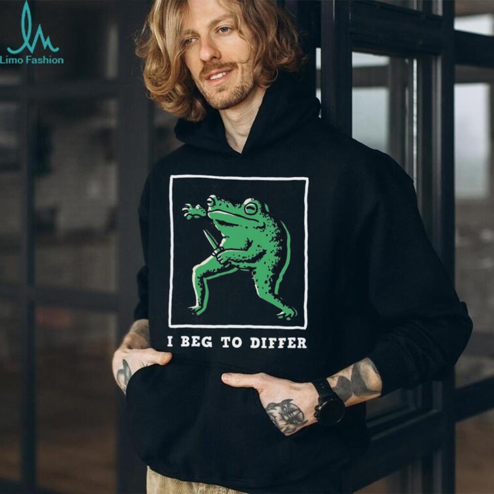 (“I Beg To Differ” Knife Wielding Frog Meme Streetwear Graphic Tee)“I Beg To Differ” Knife Wielding Frog Meme Streetwear Graphic Tee, Treat yourself or make a great gift for your loved ones