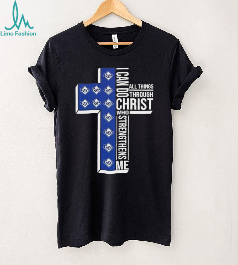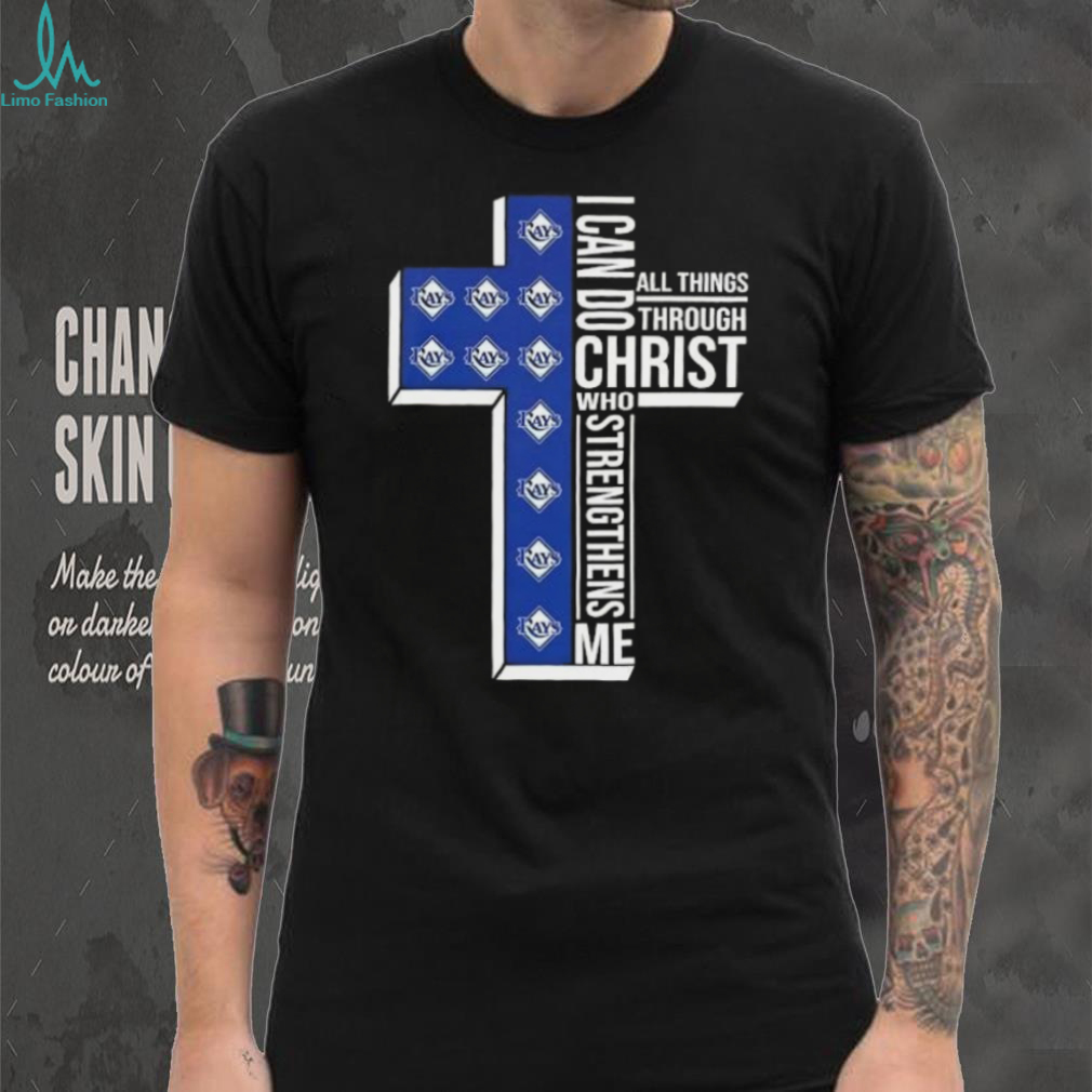 Step up to the plate with faith and team spirit in this “I can do all things through Christ who strengthens me” Tampa Bay Rays baseball cross shirt. It’s more than just fan apparel; it’s a testament to your beliefs and your love for the game. Show your support for the Rays and your faith with this unique design!