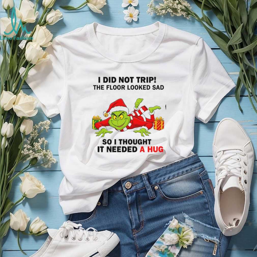 With each I Did Not Trip The Floor Looked Sad So I Thought It Needed A Hug Grinch Christmas Shirt, you are contributing to creating a green tree.