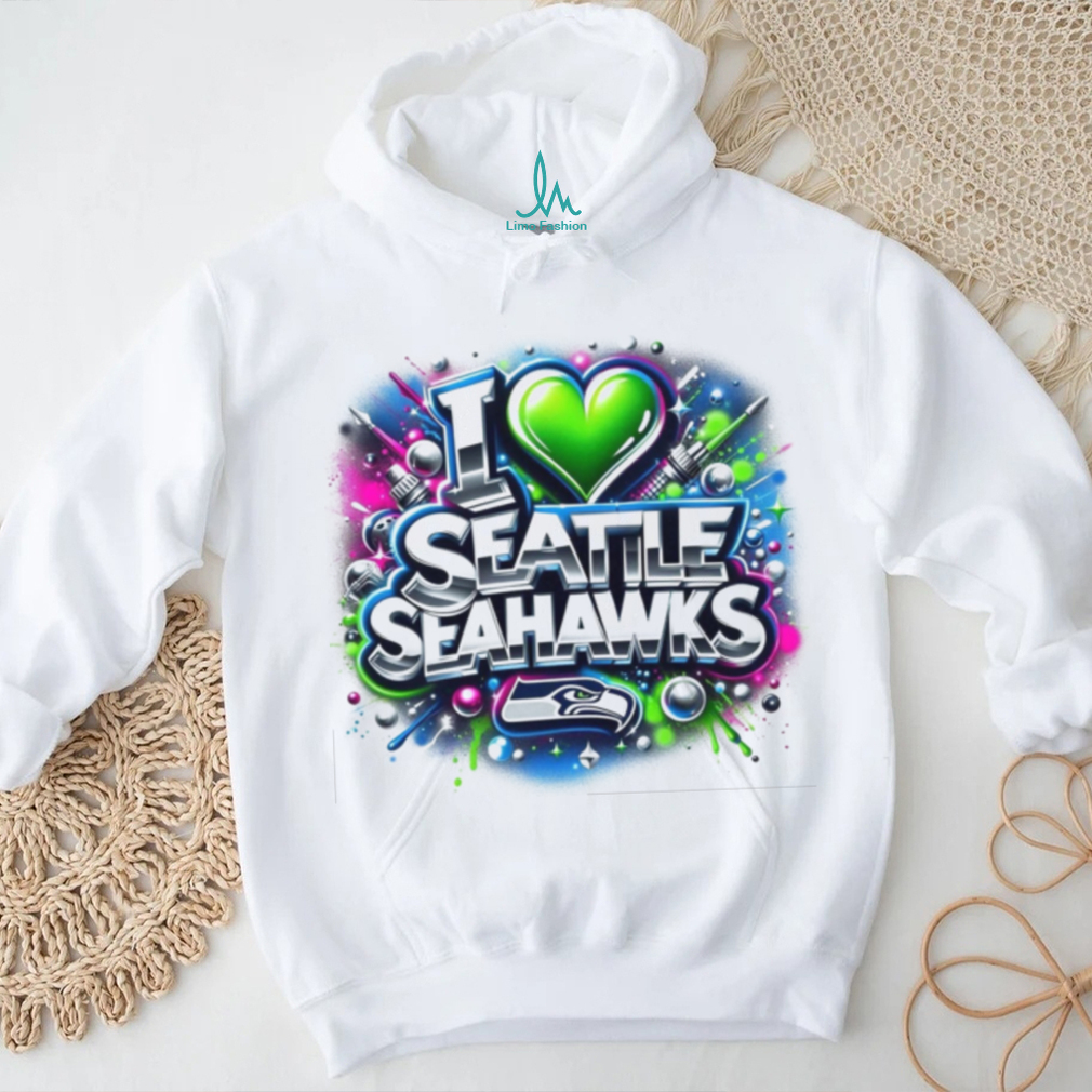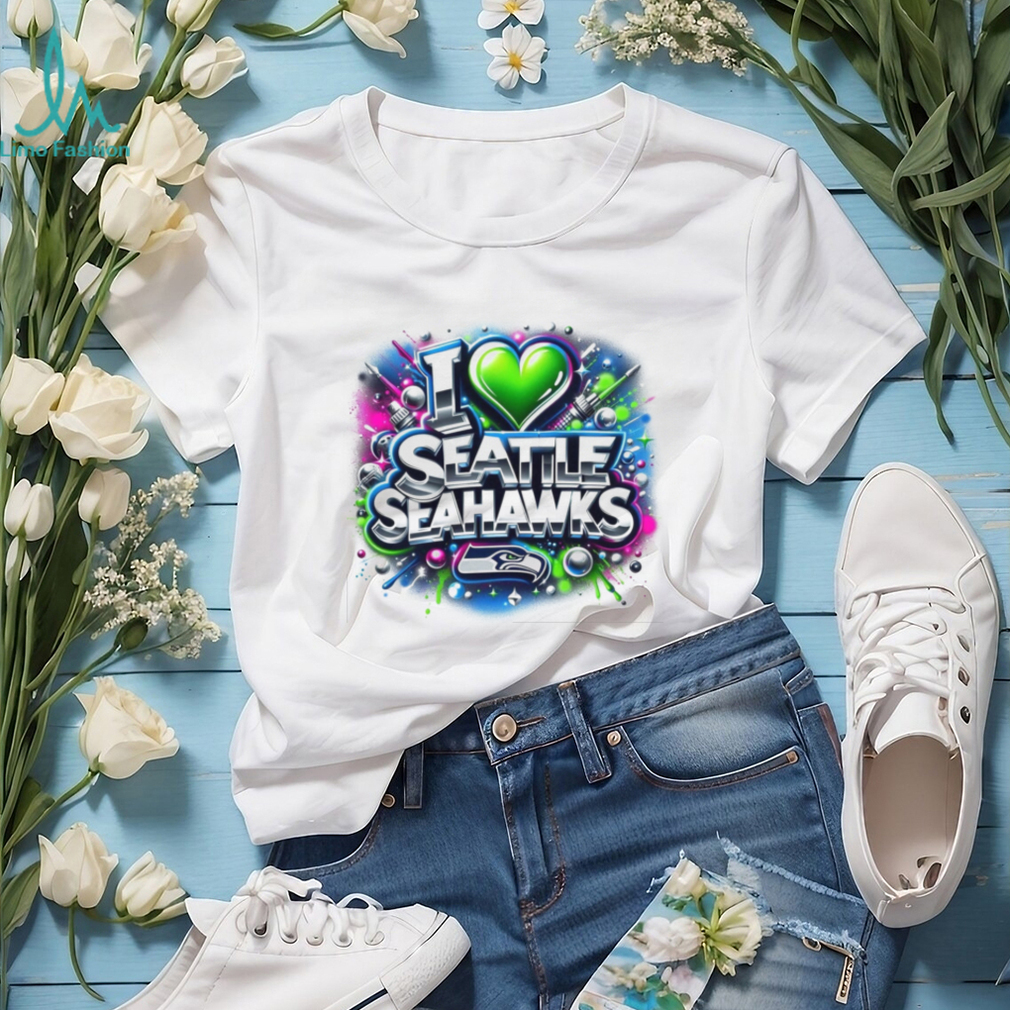 (I Love Seattle Seahawks Airbrush Graffiti Style NFL Fan T Shirt)I Love Seattle Seahawks Airbrush Graffiti Style NFL Fan T Shirt, Treat yourself or make a great gift for your loved ones