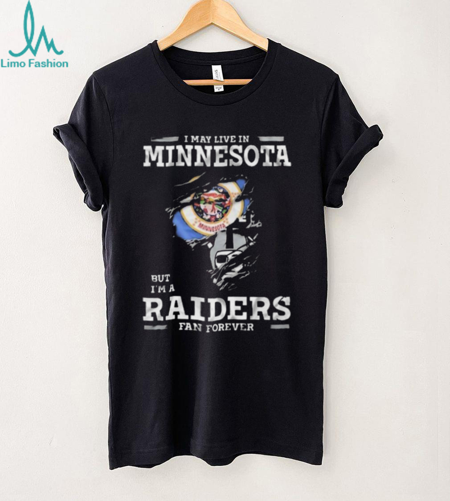 So, you bleed silver and black, but find yourself stuck in the land of 10,000 lakes? This “I May Live In Minnesota But I’m A Las Vegas Raiders Fan Forever” shirt is your defiant statement of loyalty! It’s for the Raider Nation member who hasn’t forgotten their roots, no matter how far north they roam. Show the North Star State that your heart belongs to the Raiders!