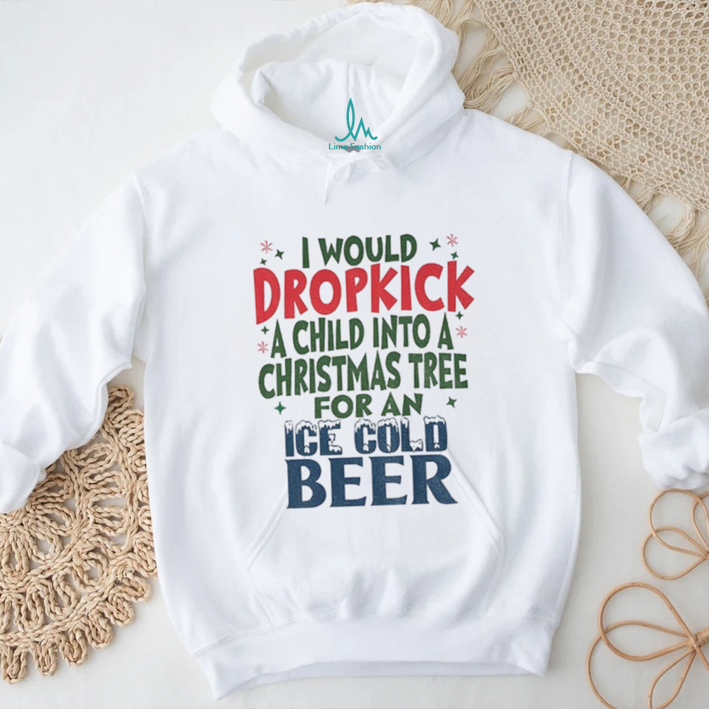 Looking for a Christmas shirt that’s a little bit naughty? This “I would dropkick a child into a Christmas tree for an Ice cold beer” Trending Shirt is guaranteed to turn heads and spark some controversy. It’s not for the easily offended, but if you have a dark sense of humor, this shirt is for you. Get yours now and make this Christmas unforgettable!