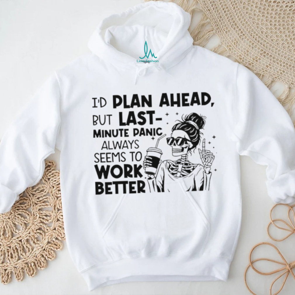 Are you the type who thrives under pressure? Then this “I’d plan ahead but last minute panic always seems to work better” shirt is for you! This tee is a funny way to own your procrastination. It’s perfect for those who find inspiration in the eleventh hour.