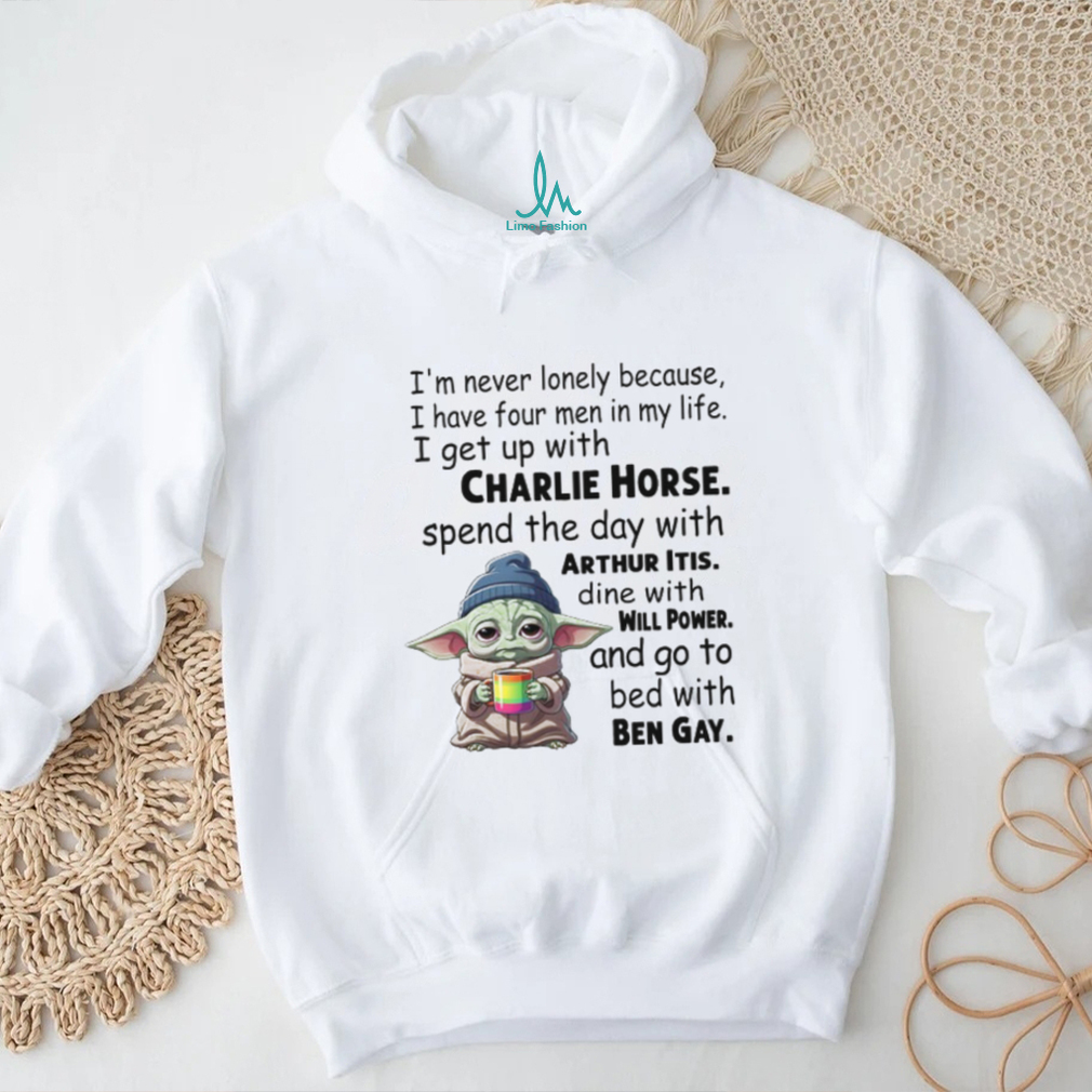 Imagine waking up and feeling like your body has a guest list of aches and pains. You’re not alone! This “I’m Never Lonely Because I Have Four Men In My Life I Get Up With Charlie Horse Spend The Day With Arthur Itis Dine With Will Power And Go To Bed With Ben Gay T Shirt” perfectly captures the humorous reality of aging with a witty, relatable twist. It’s more than just a funny tee; it’s a shared wink among those who know the daily struggles of “Charlie Horse,” “Arthur Itis,” “Will Power,” and “Ben Gay.” This shirt is for anyone who faces aging with a smile and a healthy dose of sarcasm.