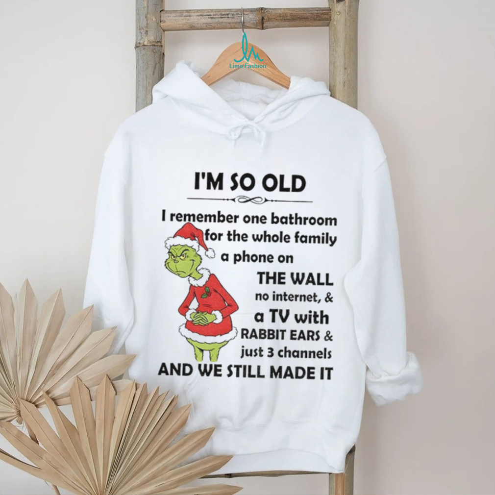I’m so old I remember one bathroom for the whole family a phone on the wall no internet and a TV Christmas shirt