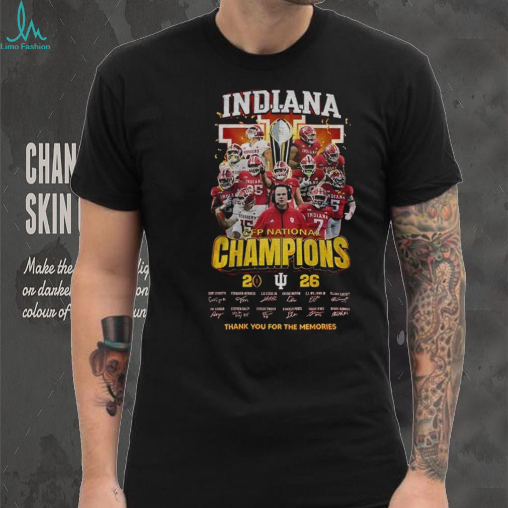 (Indiana Hoosiers Football CFP National Champions 2026 Thank You For The Memories signatures shirt)The 2026 World Cup is being shared by the U.S., Mexico, and Canada mainly because it’s going to be huge—48 teams, way more games, and way more logistics. Hosting that alone would be a nightmare, so they teamed up and split the load. Some have suggested moving the cup to Brazil or maybe to China, somewhere where a world competition is regarded as an asset and not as a threat. Well, my suspicion is that an official boycott by the governments of other nations is not likely at all, and whichever teams qualify for the Cup will show up and play. Remember, the World Cup will be held in Canada, the US, and Mexico, so a boycott makes little sense as it impacts three host countries. Some of the things they agreed to do was streamline airports, Indiana Hoosiers Football CFP National Champions 2026 Thank You For The Memories signatures shirt, and ease Visa requirements for some countries. The second Trump administration said that it was a bad deal because of Biden and changed its mind.