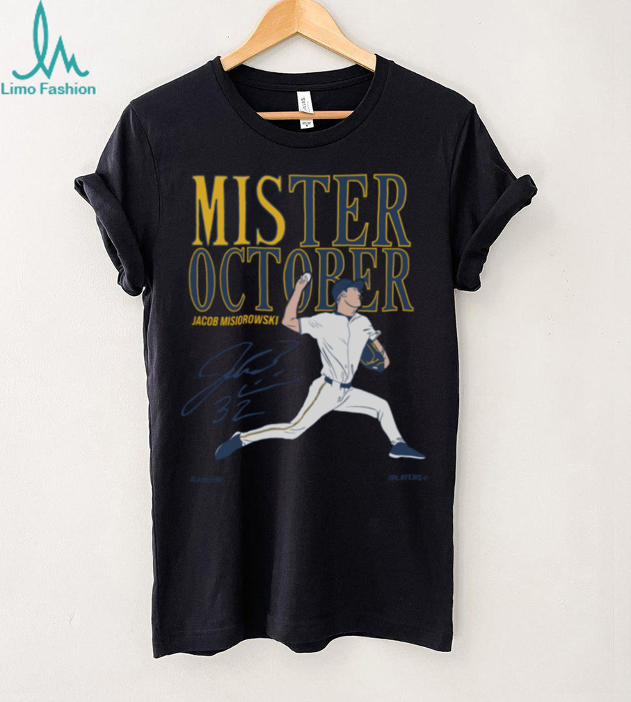 Get ready for October baseball! This Jacob Misiorowski “Mister October” Milwaukee Brewers TShirt celebrates the rising star pitcher. Show your support for Misiorowski and the Brewers with this unique tee. It’s the perfect way to show you’re a true fan!