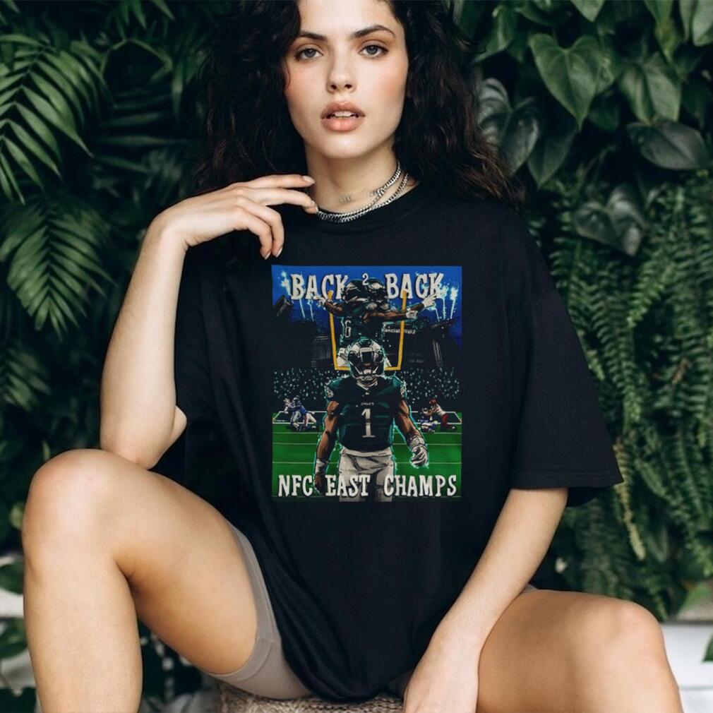 • This item: Jalen Hurts Back to Back NFC East Champs Philadelphia Eagles NFL 2025 shirt Original price was: $28.99.Current price is: $21.95.