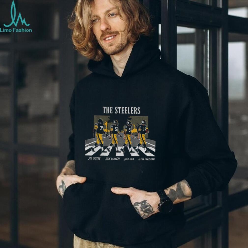 This Joe Greene Jack Lambert Jack Ham Terry Bradshaw The Pittsburgh Steelers Abbey Road Football shirt is a stylish tribute to some of the greatest players in NFL history. Perfect for game day, tailgating, or everyday wear. It’s made from a comfortable cotton blend for all-day comfort. Be sure to consult the size chart to get the best fit for you.