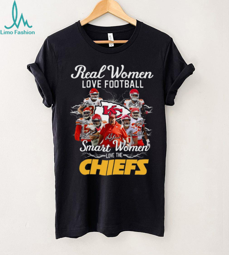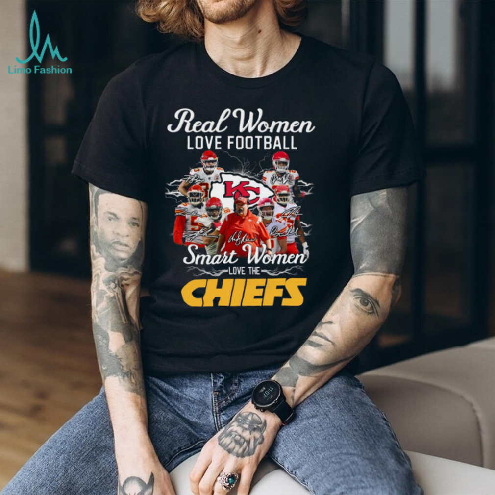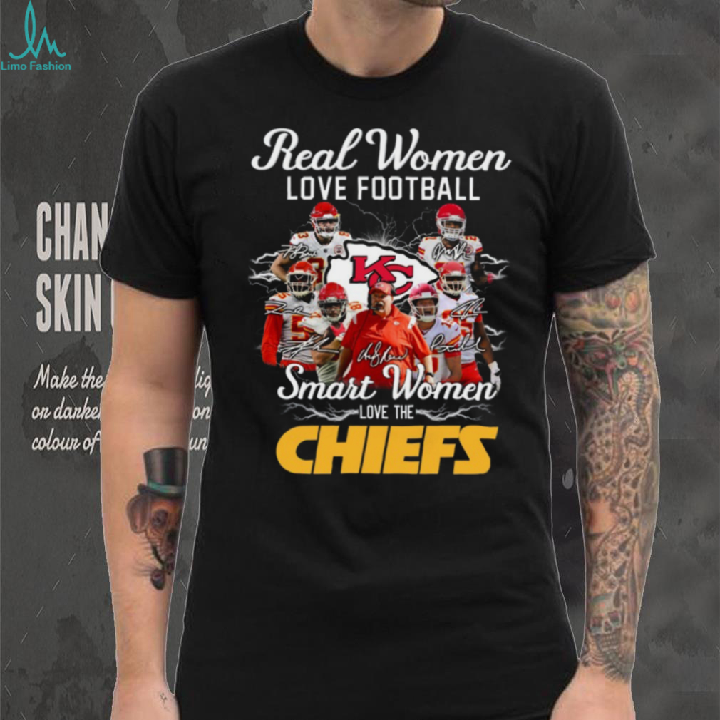 To keep your Kansas City Chiefs Fan Gear Real Women Love Football Shirt looking its best, machine wash cold with like colors, tumble dry low, and do not iron directly on the graphic. Avoid using bleach to preserve the design and fabric.