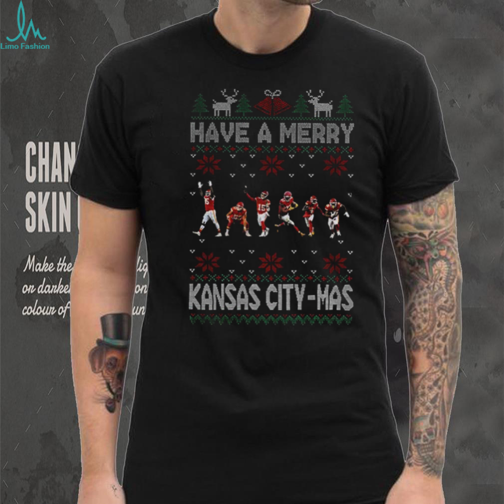 Ready to light up the holidays with some Chiefs Kingdom cheer? This Kansas City Chiefs Football “Have A Merry Kansas City Mas” shirt is the perfect way to show your team spirit this Christmas. Imagine rocking this at Arrowhead Stadium or your family’s holiday feast – guaranteed to score some major style points!