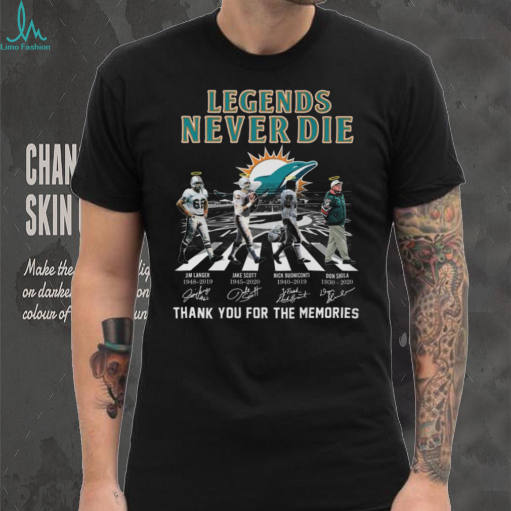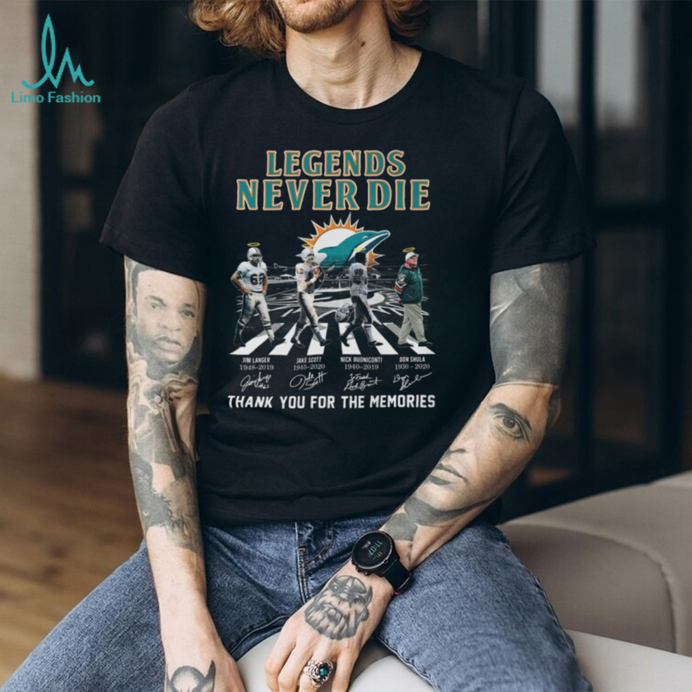 Celebrate the enduring legacy of the Miami Dolphins with the “Legends Never Die” Signature T-Shirt. This shirt pays tribute to the iconic players who have shaped the Dolphins’ history, making it a must-have for any true fan. Embodying the spirit of victory and resilience, this tee is perfect for showcasing your team pride on game day or any day. It’s a fitting tribute for fans who believe that the greatness of the Dolphins’ past continues to inspire the team today.