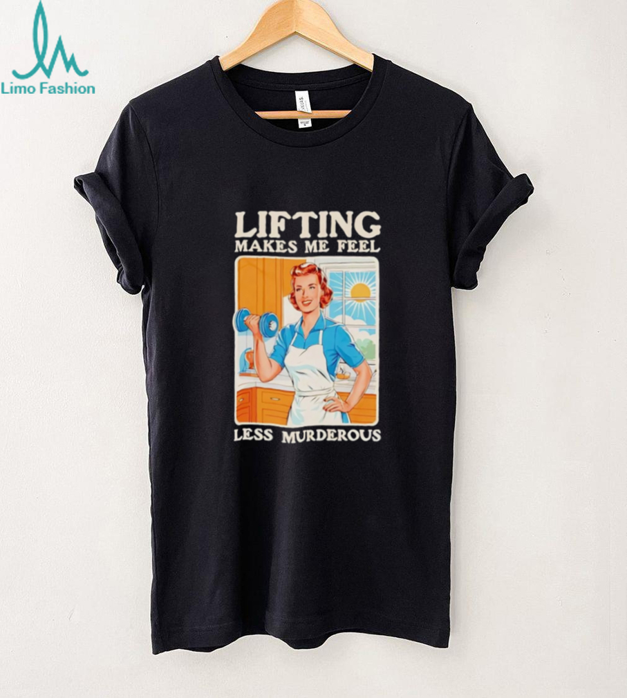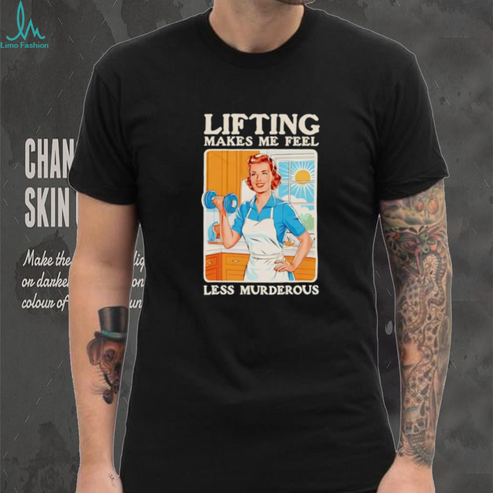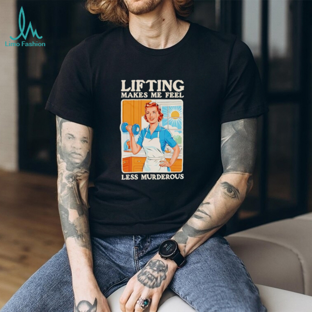 Ever have those days where lifting is the only thing standing between you and utter chaos? This “Lifting makes me feel less murderous shirt” is the perfect way to express that feeling! It’s a hilarious nod to the therapeutic power of pumping iron.