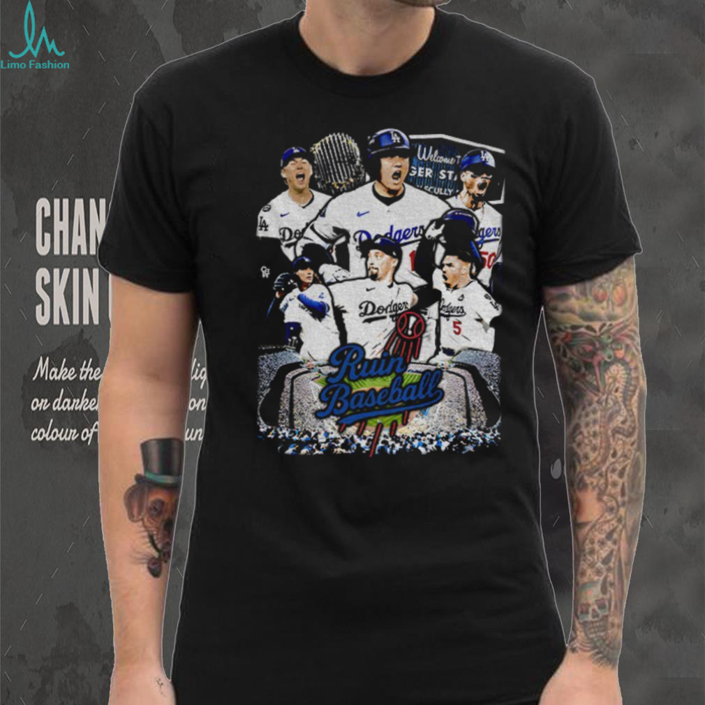 This isn’t just your average team tee. It’s a unique shirt that showcases your Dodgers pride with a witty twist. The phrase “ruin baseball” is a playful jab at rival teams, and it’s sure to get a reaction. Made from a comfortable, breathable fabric, this shirt is perfect for game day, watch parties, or just showing off your Dodgers love around town.