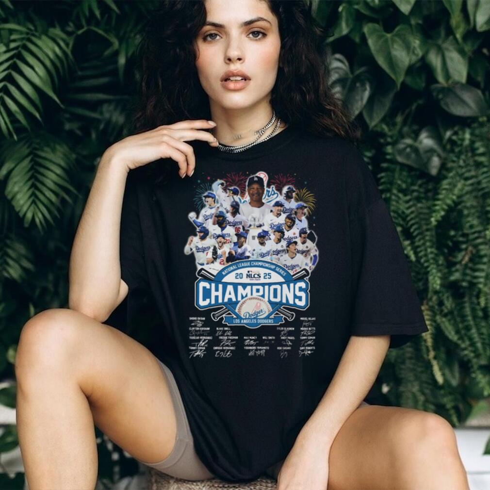 Celebrate the Dodgers’ potential triumph with this Los Angeles Dodgers National League Champions 2025 Signature T-Shirt! Imagine the thrill of victory, the champagne showers, and the Dodgers hoisting the trophy. This shirt lets you share that excitement, and show your unwavering support for the team. Let’s go Dodgers!