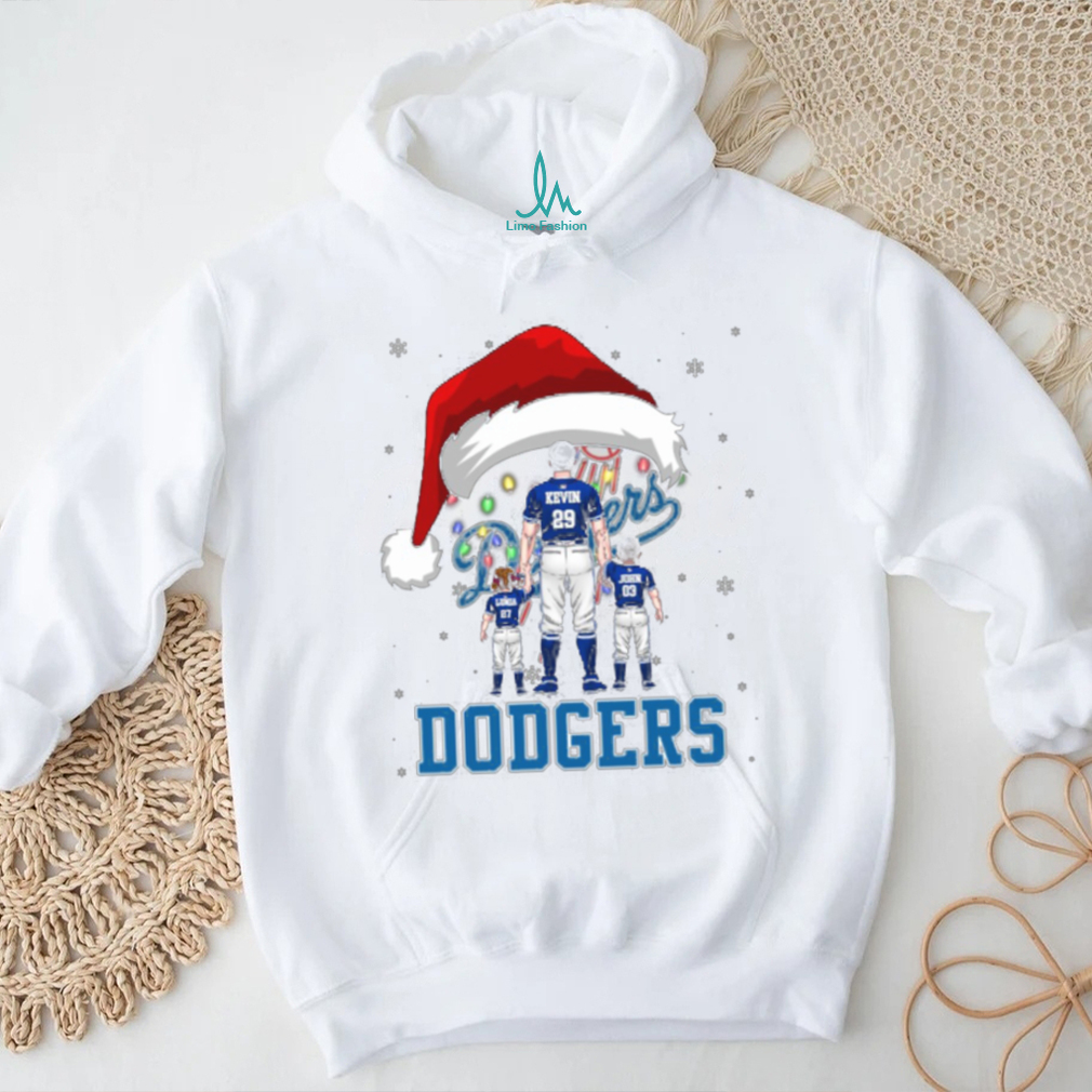 Los Angeles Dodgers Santa Christmas Lights Matching Shirt – Personalized MLB Fan Tee – Custom Holiday Baseball Gift for Families