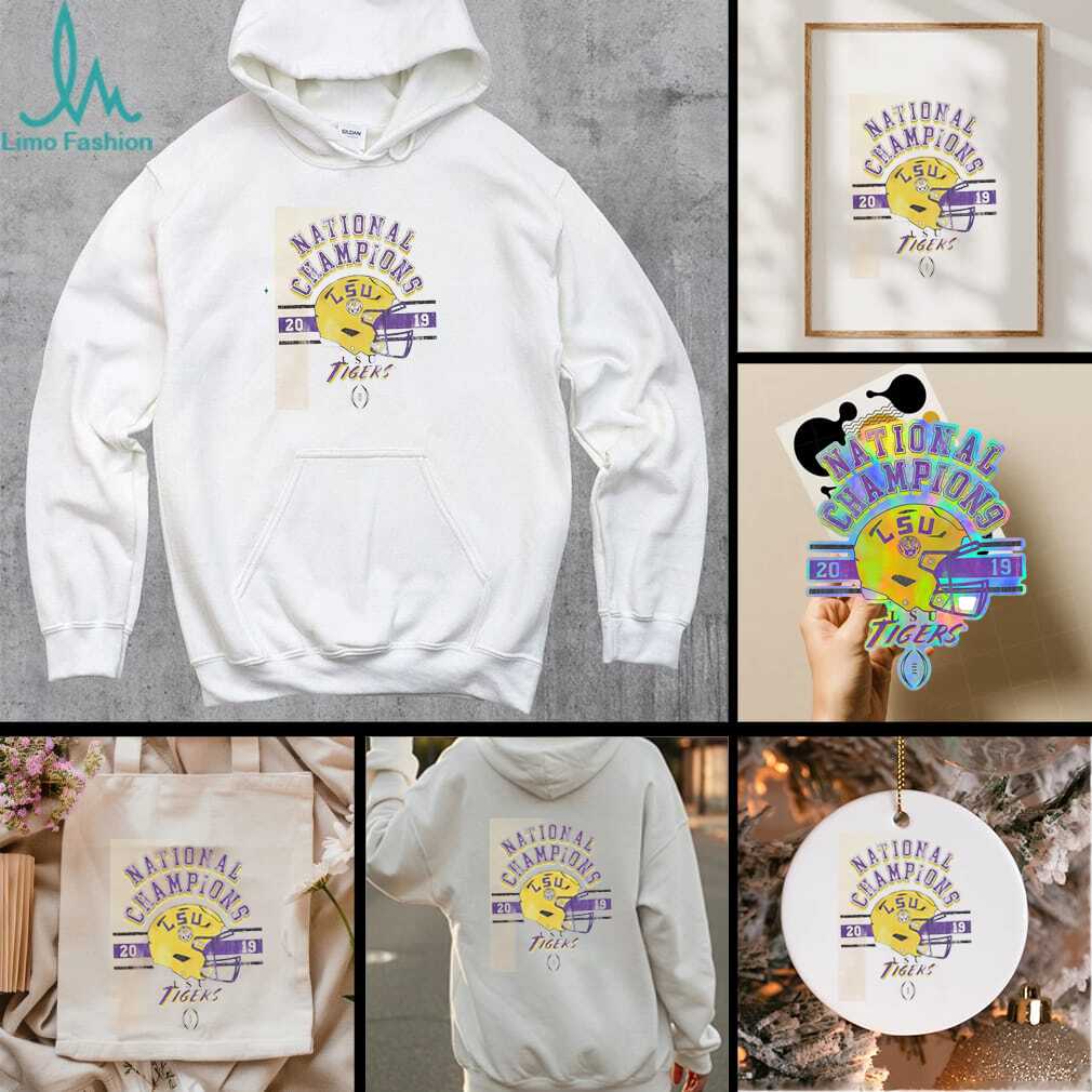This LSU Tigers 2019 CFP National Champions helmet shirt is more than just a tee; it’s a collector’s item. Imagine wearing this to a tailgate, a watch party, or just around campus. It’s designed for LSU fans who want to celebrate their team’s historic achievement. More than apparel, it’s a badge of honor. Crafted from a comfortable and durable cotton blend, this shirt is perfect for game day or any day. It’s available in sizes S to 5XL. The helmet design is printed with high-quality inks for long-lasting vibrancy.