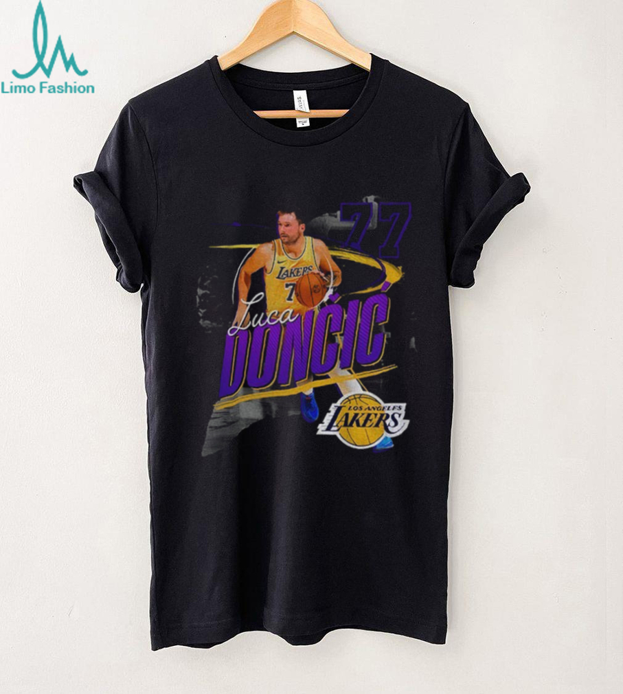 Imagine Luka Dončić wearing the purple and gold! This unique Luka Dončić 77 Los Angeles Lakers NBA Basketball player shirt is a fun and imaginative tribute to the star player in a hypothetical Lakers uniform. A must-have for any basketball fan with a sense of humor!