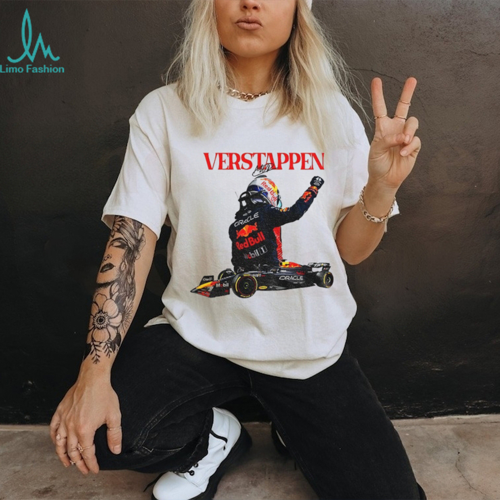 👕About Max Verstappen F1 World Champion Red Bull Car signature shirt