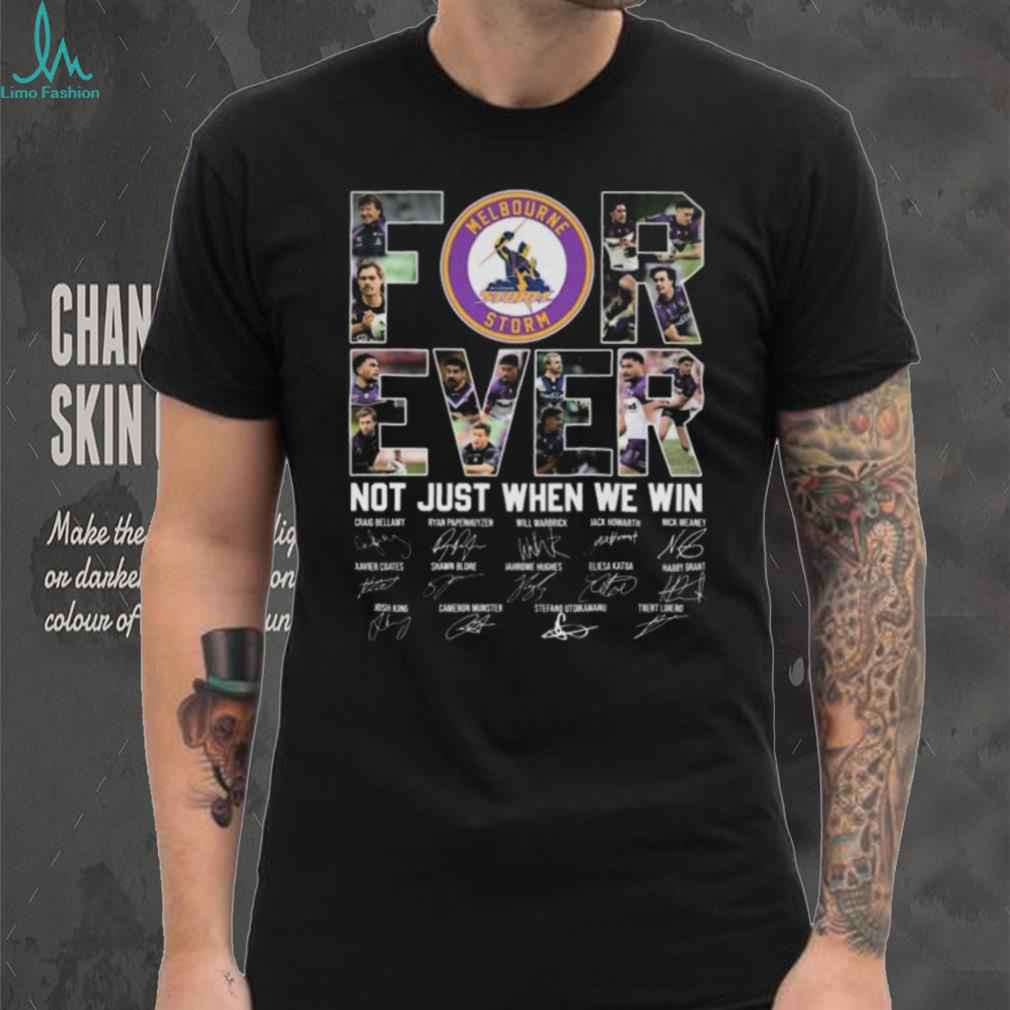 This Melbourne Storm “Forever Not Just When We Win Signatures 2025” T-shirt embodies true fan dedication. This shirt is a reminder of what it means to be a true fan. This shirt ensures you do exactly that. Soft, breathable, and perfect for wearing to games or around town.