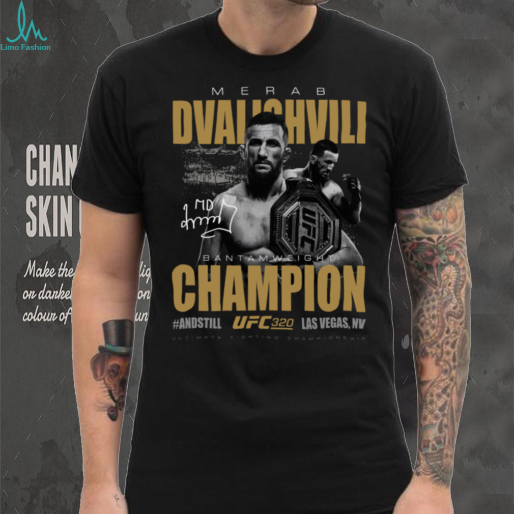 This Merab Dvalishvili UFC 320 #AndStill World Men’s Bantamweight Champion T Shirt isn’t just another piece of MMA apparel; it’s a symbol of dedication, perseverance, and triumph. Feel the comfort with every wear, thanks to the breathable material perfect for training or everyday wear. It’s the perfect way to show your respect for “The Machine” and his incredible achievement.