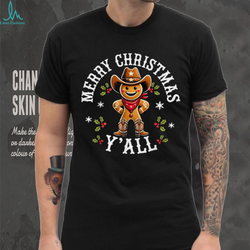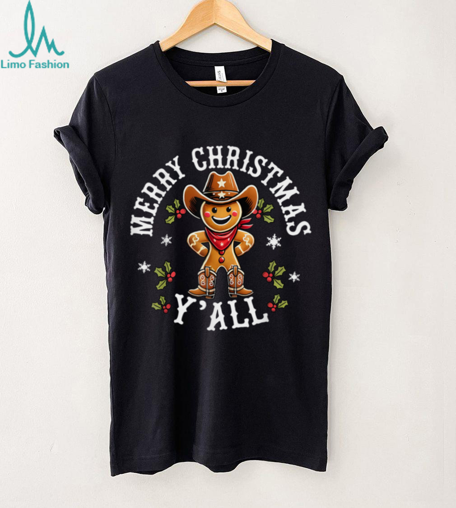 👕About Merry Christmas Yall Gingerbread Cowboy Howdy Western Xmas T Shirt
