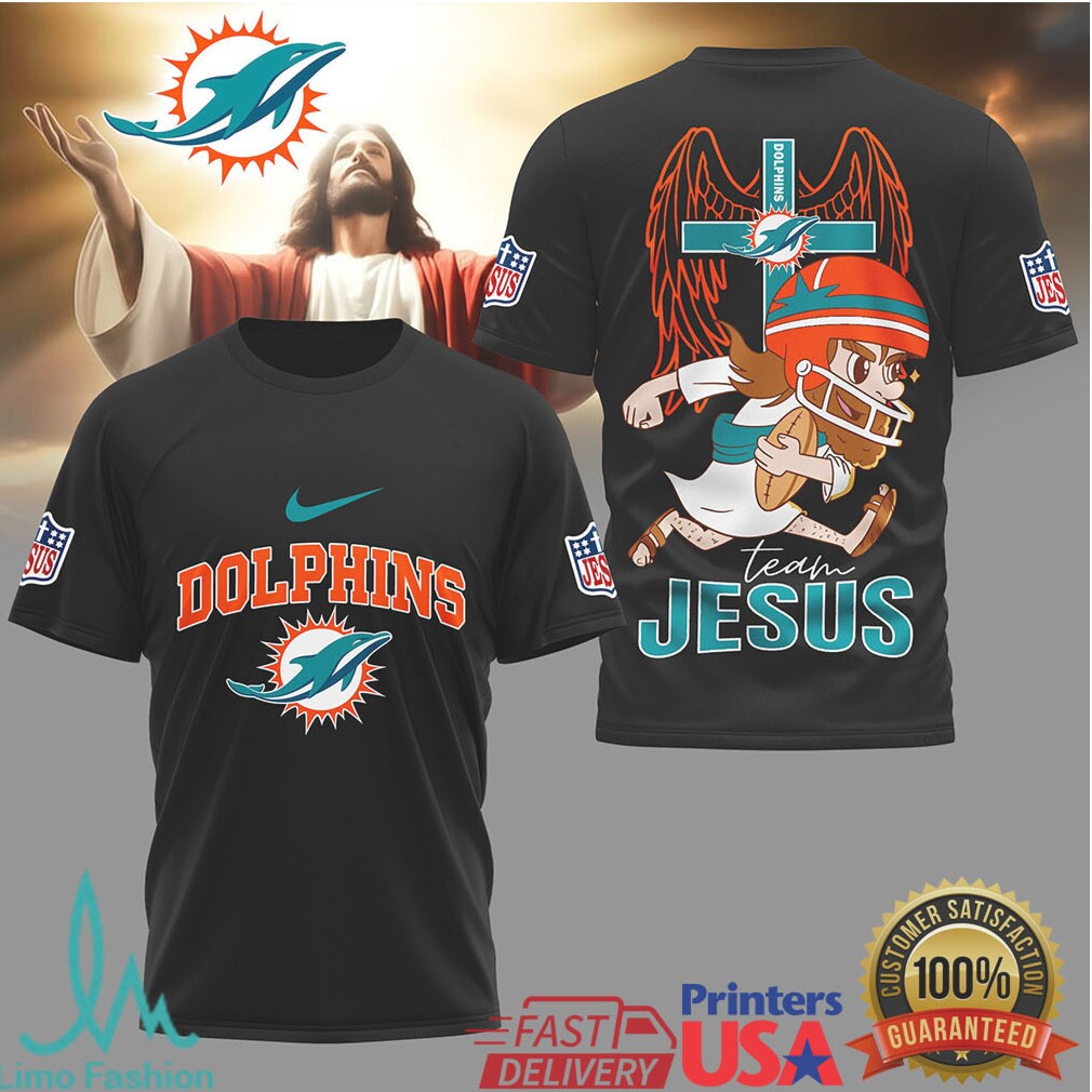 The Miami Dolphins Official NFL Team Jesus 3D Shirt harmoniously blends your Christian faith with your devotion to the Miami Dolphins. Featuring a striking 3D design, this shirt makes the iconic Dolphins logo and the inspiring “Team Jesus” message pop, ensuring your dual allegiances are clearly visible. Crafted from a comfortable, breathable fabric, it’s designed to keep you at ease whether you’re at a Sunday service, a game day gathering, or simply enjoying a casual day out. Available in various sizes, it offers a great fit for every fan looking to unite their faith and football pride.