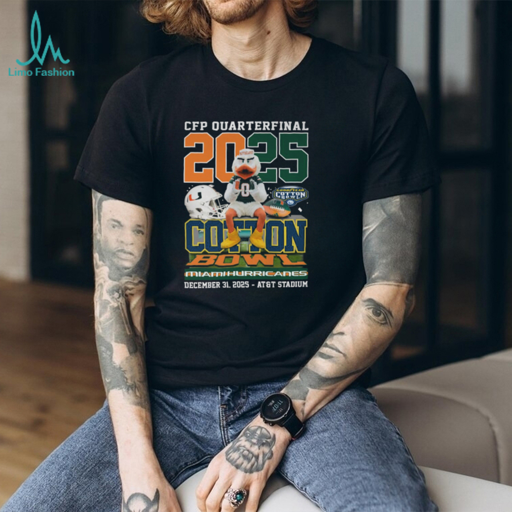 👕About Miami Hurricanes 2025 CFP Quarterfinal Cotton Bowl Mascot T Shirt